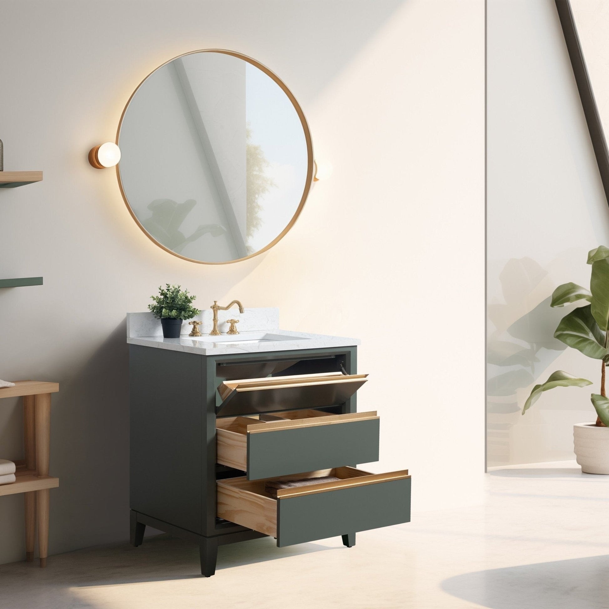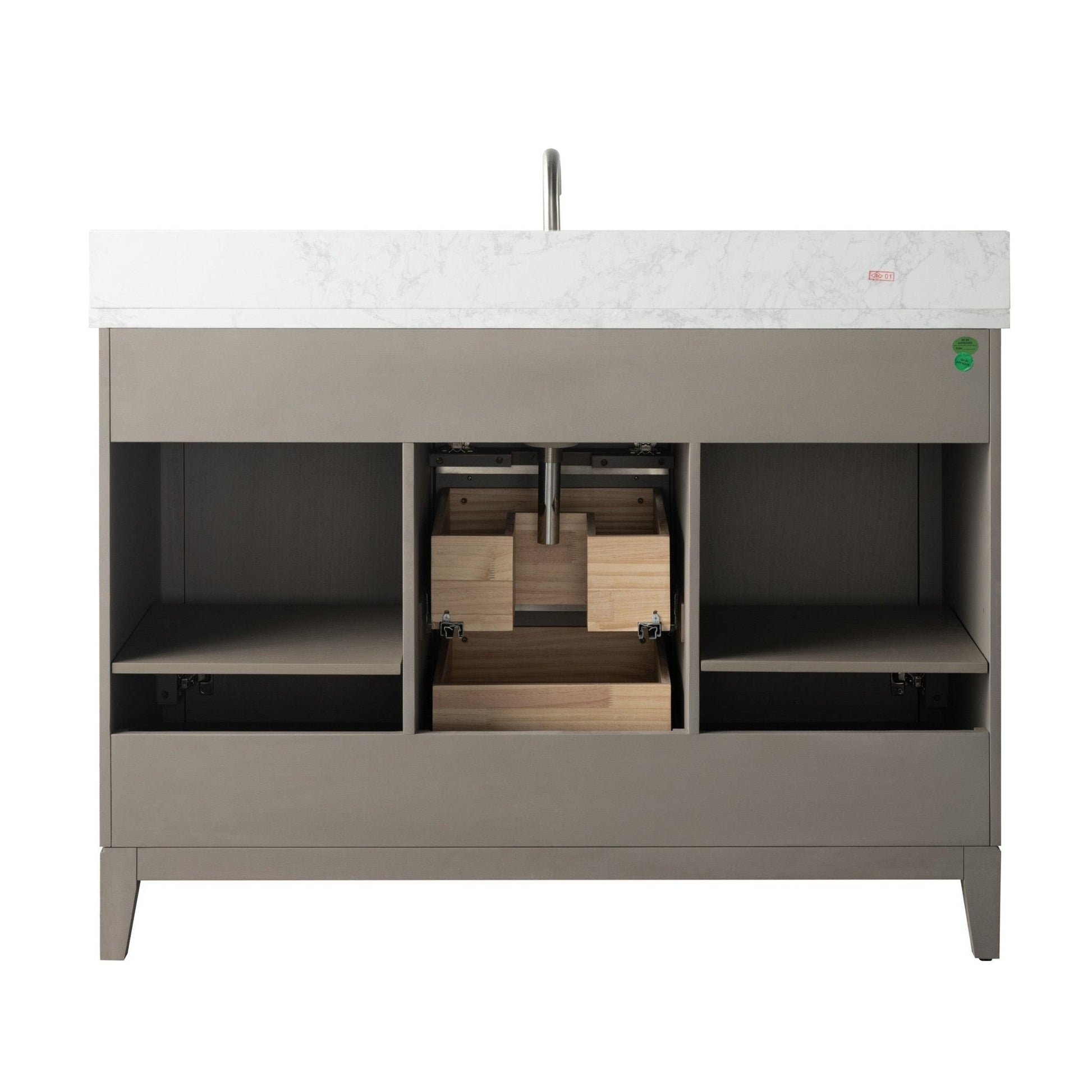 Vanity Art vous présente la vanité de salle de bain haut de gamme en bois de peuplier avec lavabo intégré. C'est l'alliance parfaite de fonctionnalité et de style pour votre maison. Ce meuble essentiel offre un espace de rangement généreux, avec un plateau rabattable, des étagères réglables et des tiroirs pour garder vos effets personnels organisés et facilement accessibles. Conçu pour plus de commodité, notre meuble-lavabo possède un élégant plan de travail en marbre Ariston qui allie élégance et facilité d'entretien. Le lavabo rectangulaire à poser complète le plan de travail, créant un aspect harmonieux et attrayant pour votre salle de bain. Construit pour durer, notre meuble sous-lavabo est équipé de portes et de tiroirs à fermeture amortie et de charnières de haute qualité, garantissant un fonctionnement fluide et fiable. La polyvalence est essentielle – nos meubles-lavabos ne sont pas réservés à la salle de bain. Avec son design élégant et ses fonctionnalités pratiques, il est parfait comme meuble de cuisine avec lavabo.