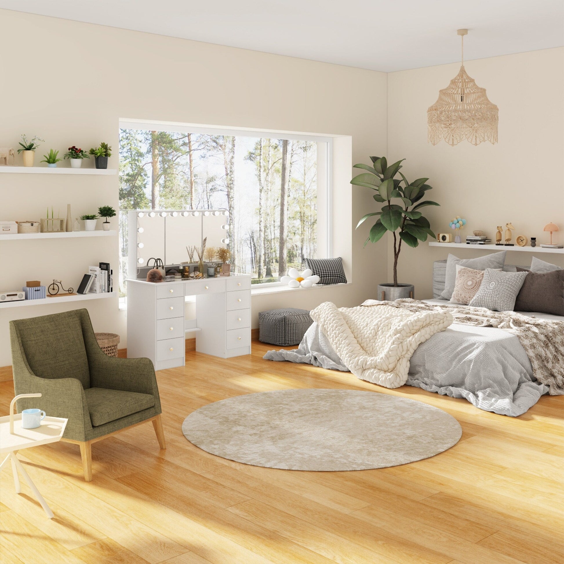 Coiffeuse avec miroir à trois volets, éclairage certifié...