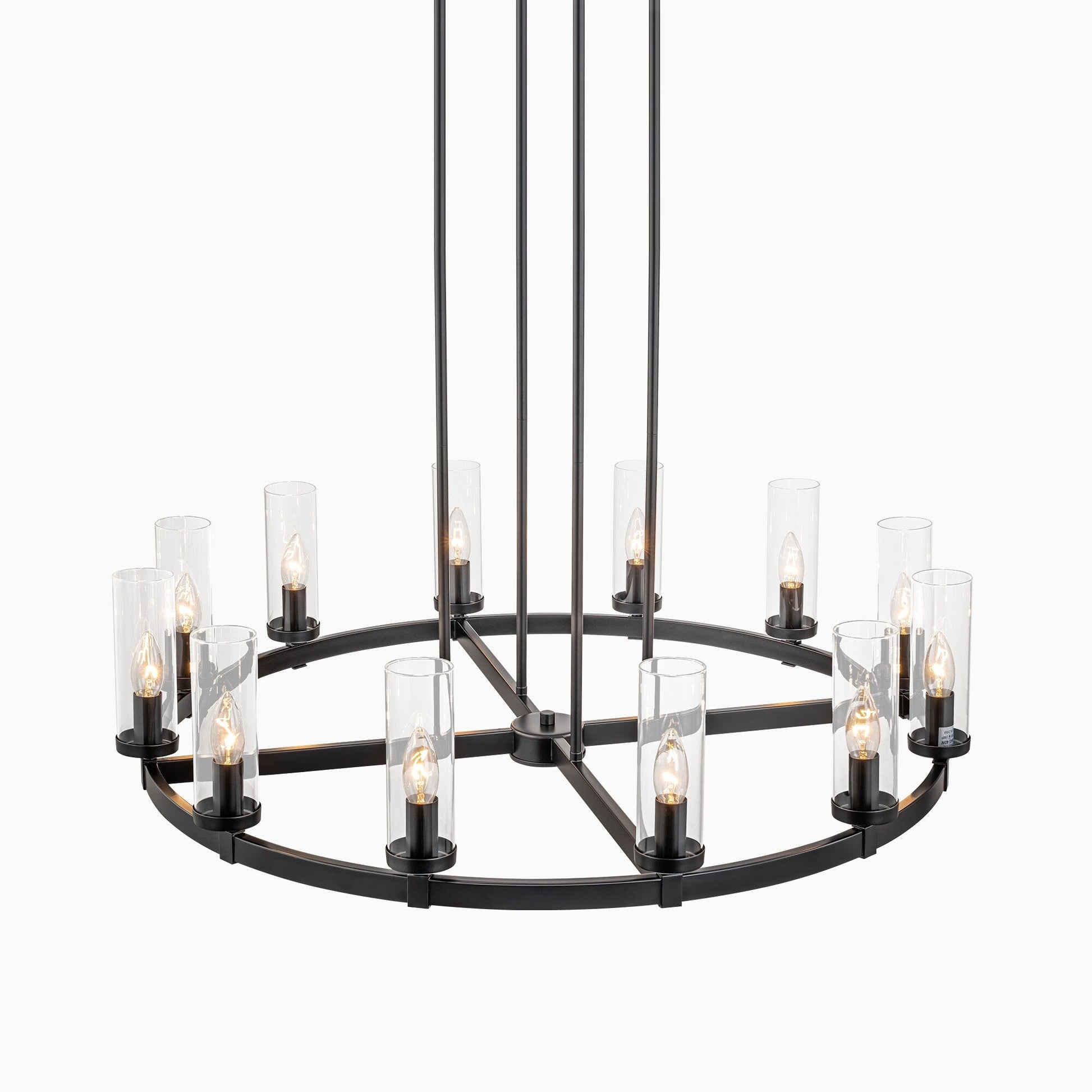 Grand lustre à 12 lumières, style cylindrique moderne...