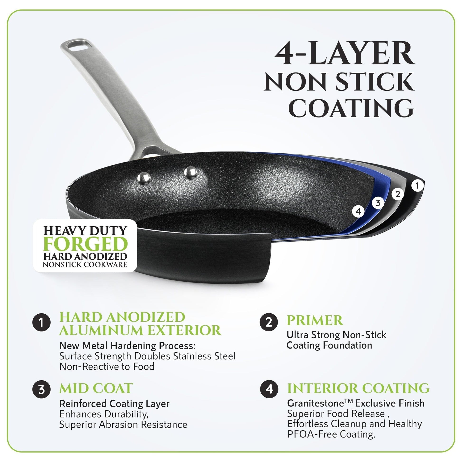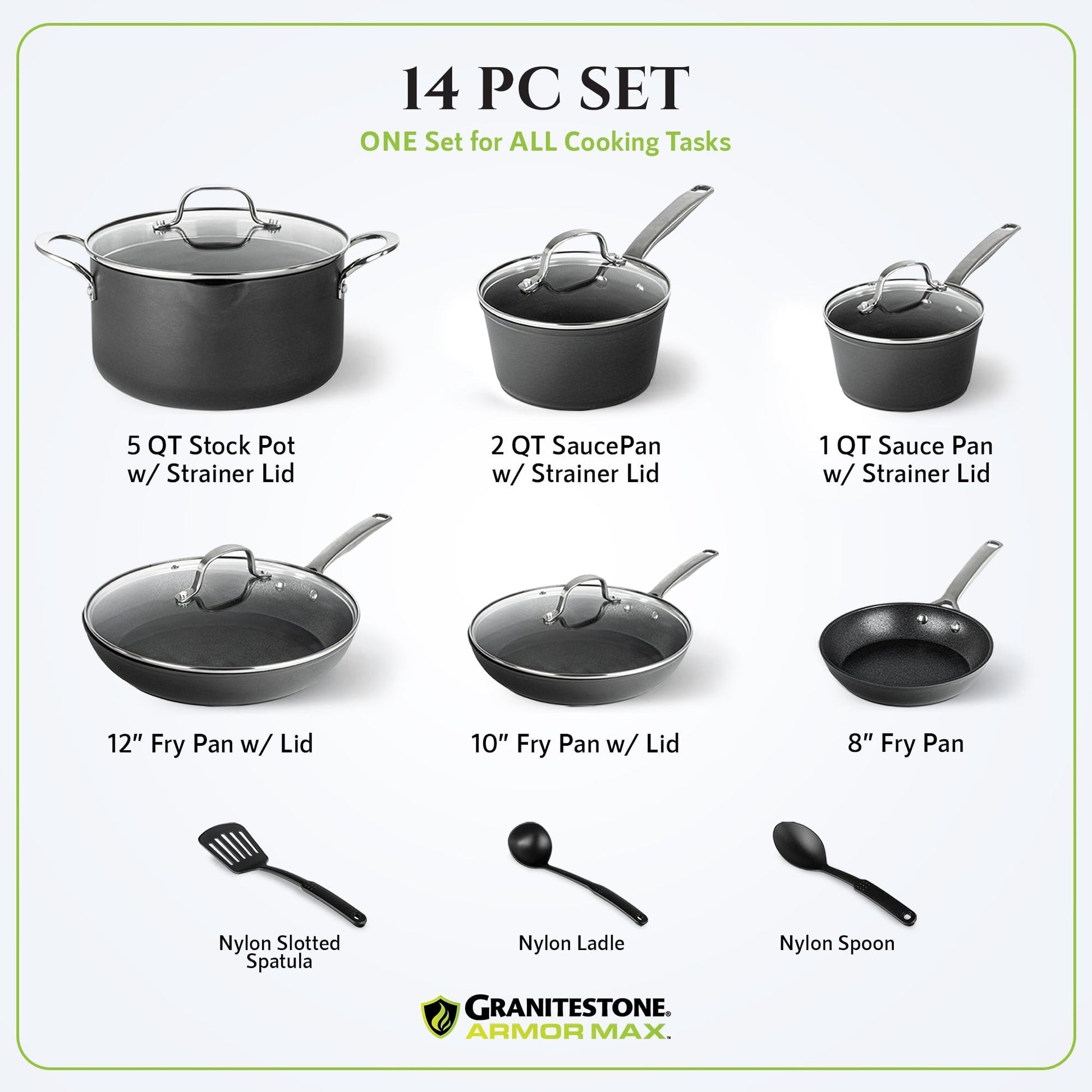 - CONÇU POUR DUREZ DES ANNÉES : Granitestone Armor Max est fabriqué à partir d'aluminium forgé, anodisé dur et résistant, plus solide que l'acier inoxydable, ce qui garantit que vos ustensiles de cuisine antiadhésifs dureront des années.