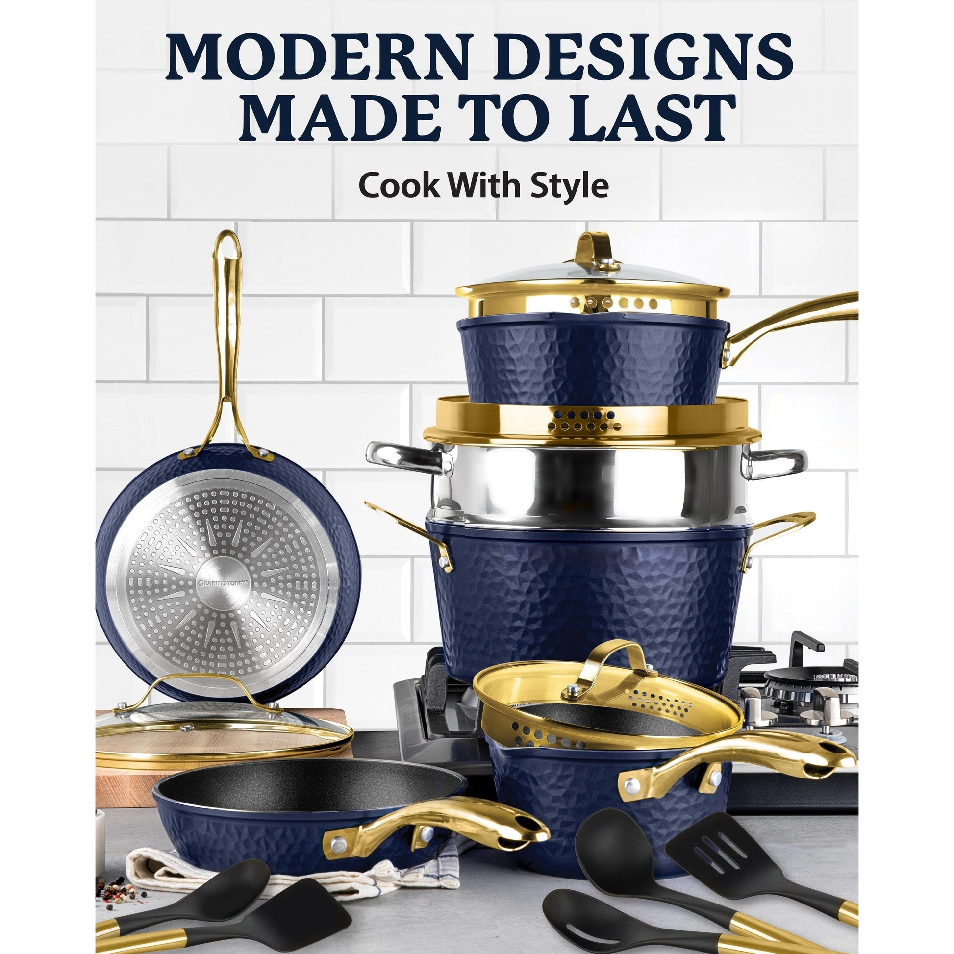 Ensemble de cuisine antiadhésif Granitestone Charleston en 15...