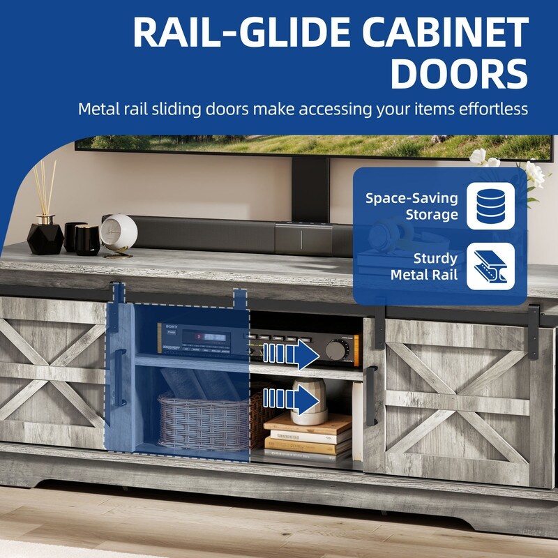 Meuble TV style farmhouse pour téléviseur jusqu'à 65...
