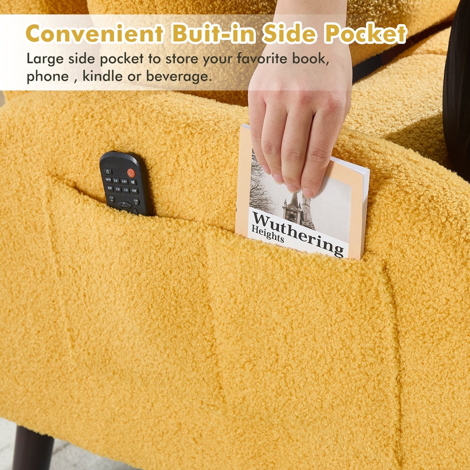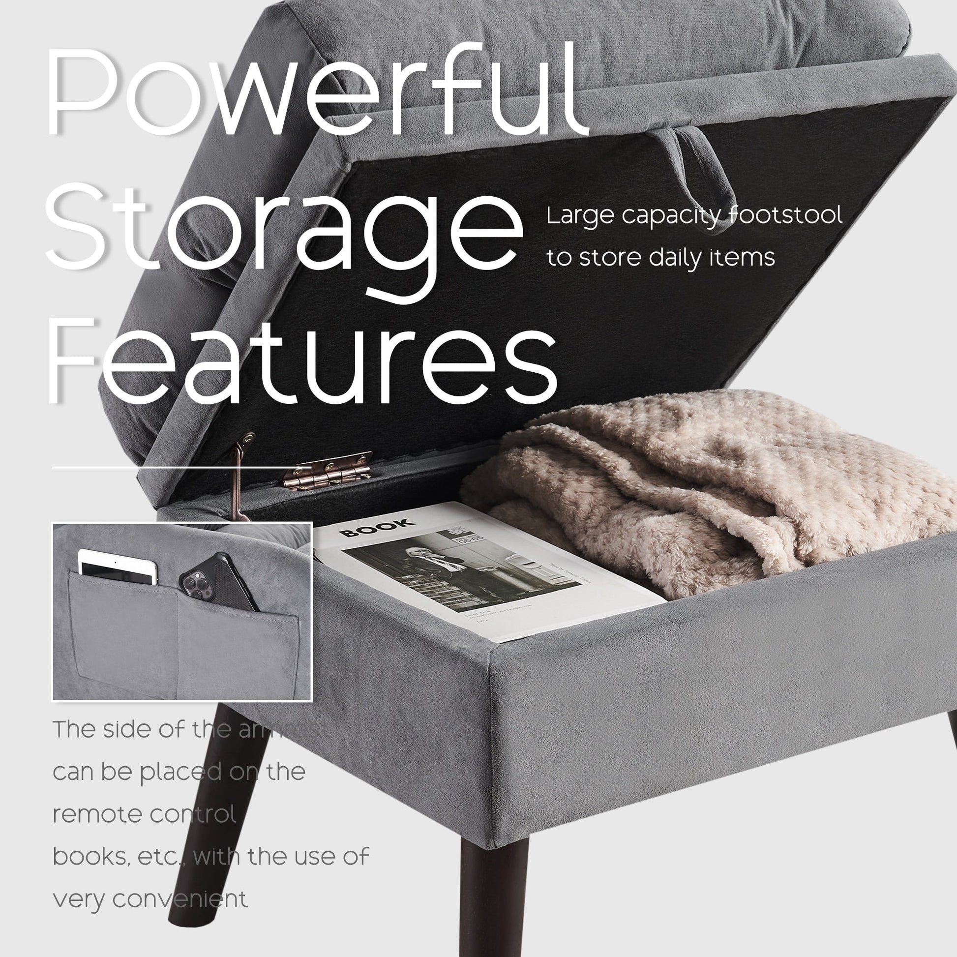 Ce fauteuil d'appoint avec pouf est une version partiellement améliorée du modèle de base original, avec l'ajout d'une grande poche de rangement sur le côté, pratique pour ranger tous vos objets. La nouvelle fonction de rangement du pouf, multifonctionnelle et pratique pour le rangement quotidien, rend votre maison plus propre et facilite votre vie, en vous offrant un accès facile à vos affaires.