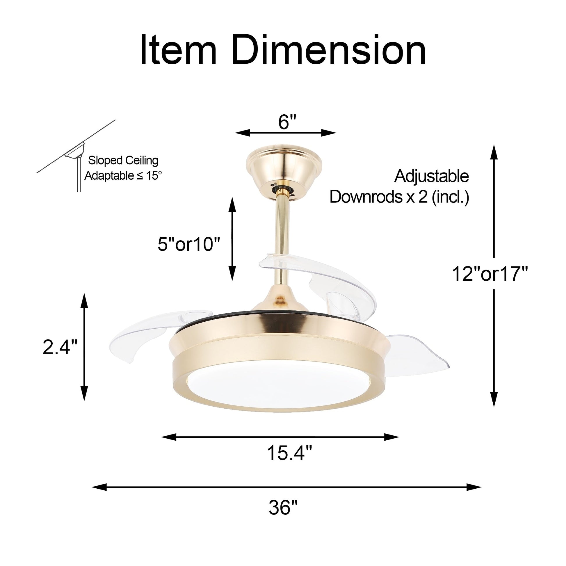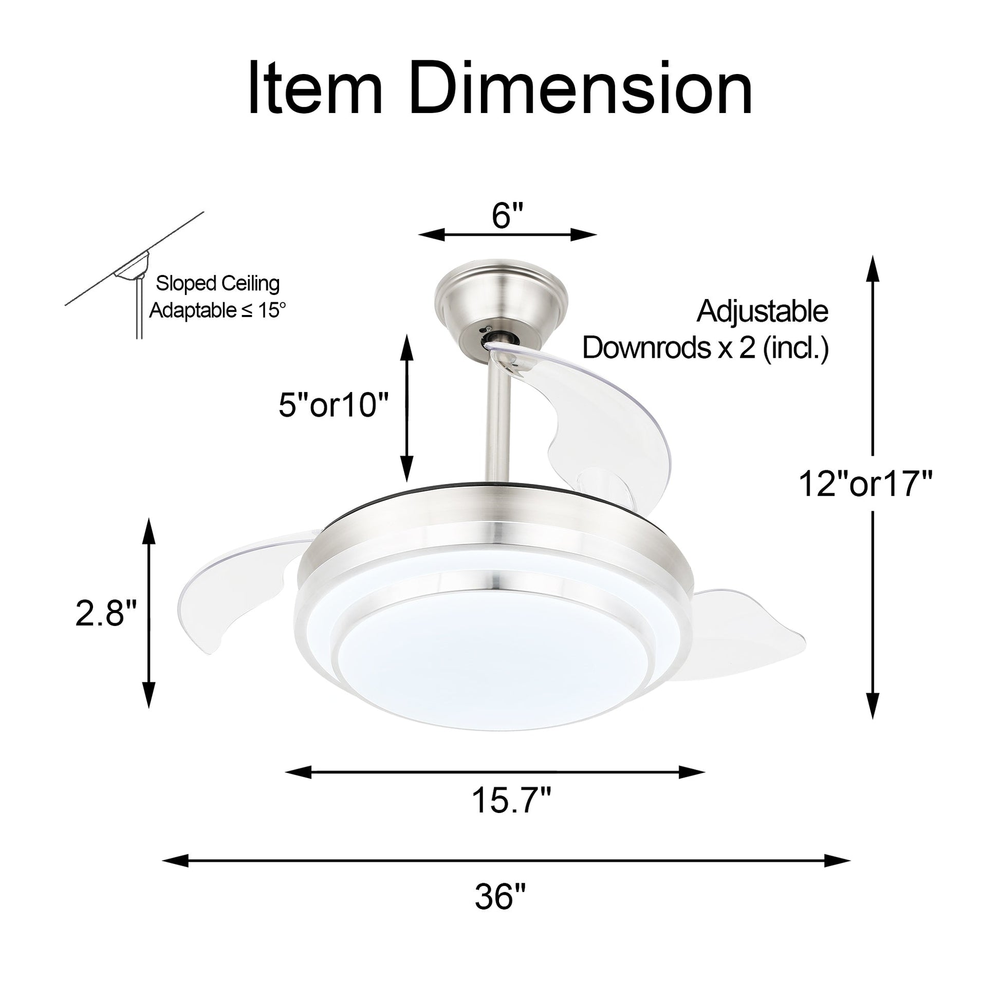 Ventilateur de plafond rétractable moderne Bella Depot 36 avec éclairage LED, lames réversibles à 6 vitesses avec télécommande