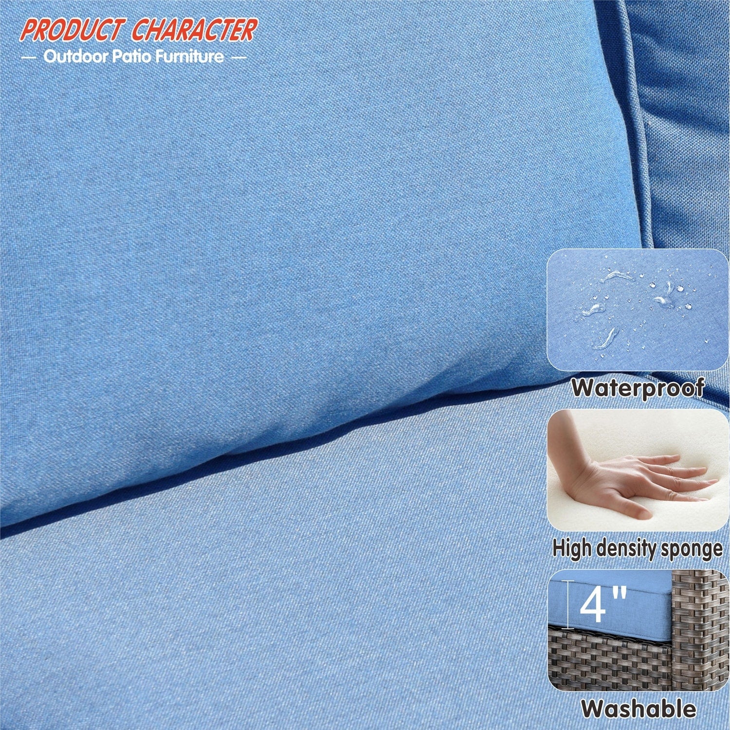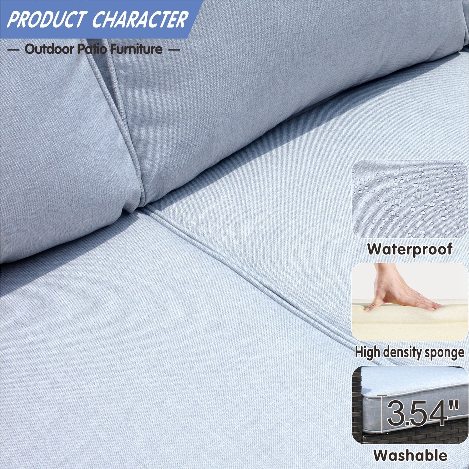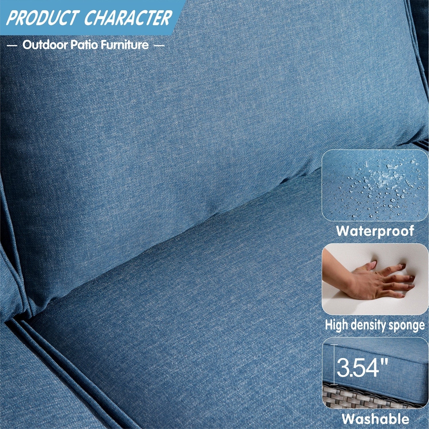- Résistant à l'eau et adapté aux intempéries : Les coussins et les meubles sont conçus pour résister à l'eau, ce qui les rend idéaux pour supporter la pluie ou la neige légère. Bien que cet ensemble supporte la plupart des conditions météorologiques sans problème, il est préférable de le protéger des intempéries extrêmes pour une plus grande longévité.