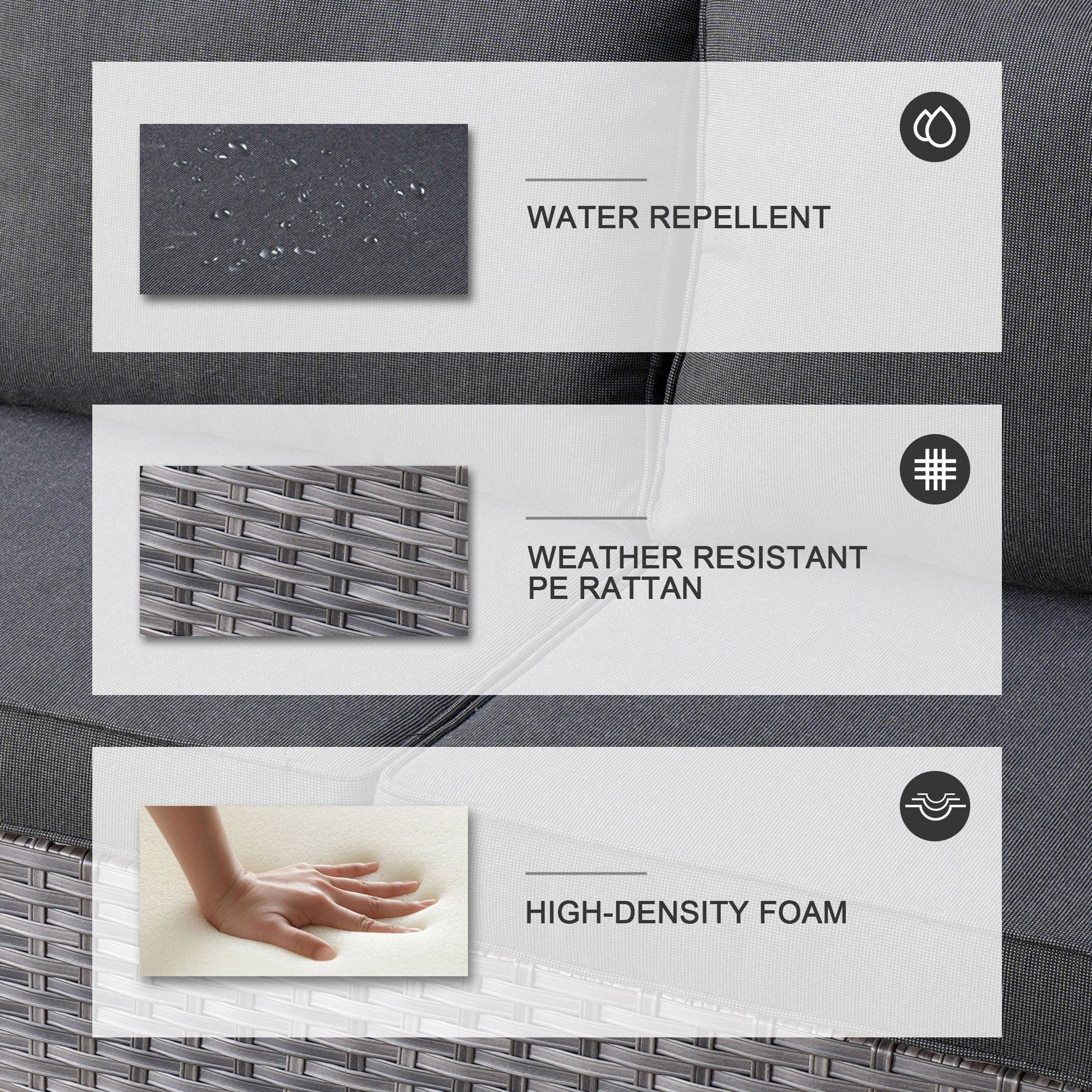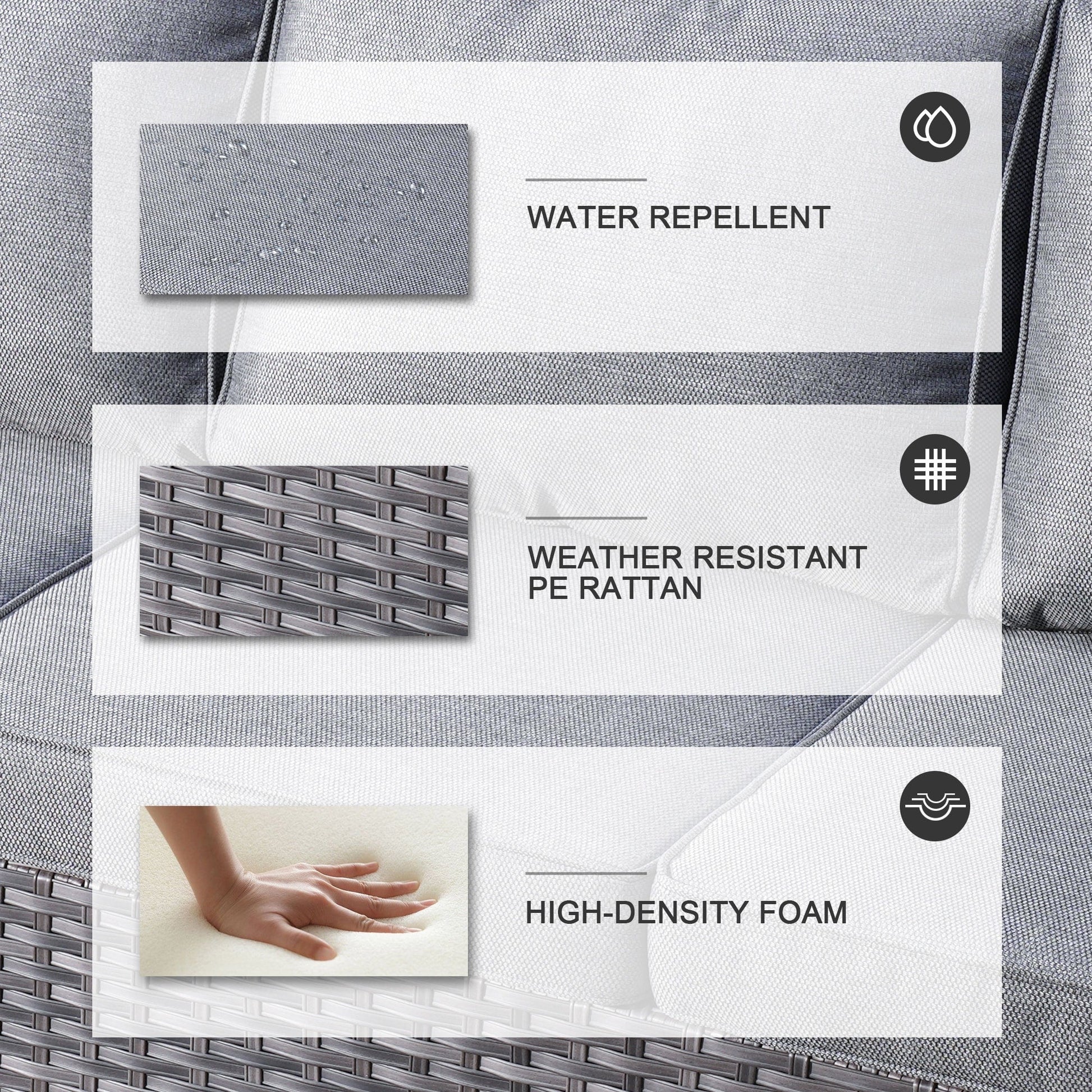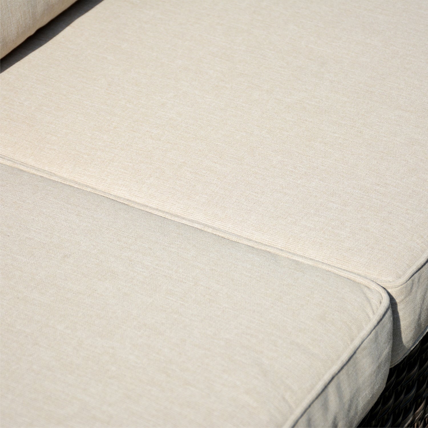 - Résistant à l'eau et adapté aux intempéries : Les coussins et les meubles sont conçus pour résister à l'eau, ce qui les rend idéaux pour supporter la pluie ou la neige légère. Bien que cet ensemble supporte la plupart des conditions météorologiques sans problème, il est préférable de le protéger des intempéries extrêmes pour une plus grande longévité.