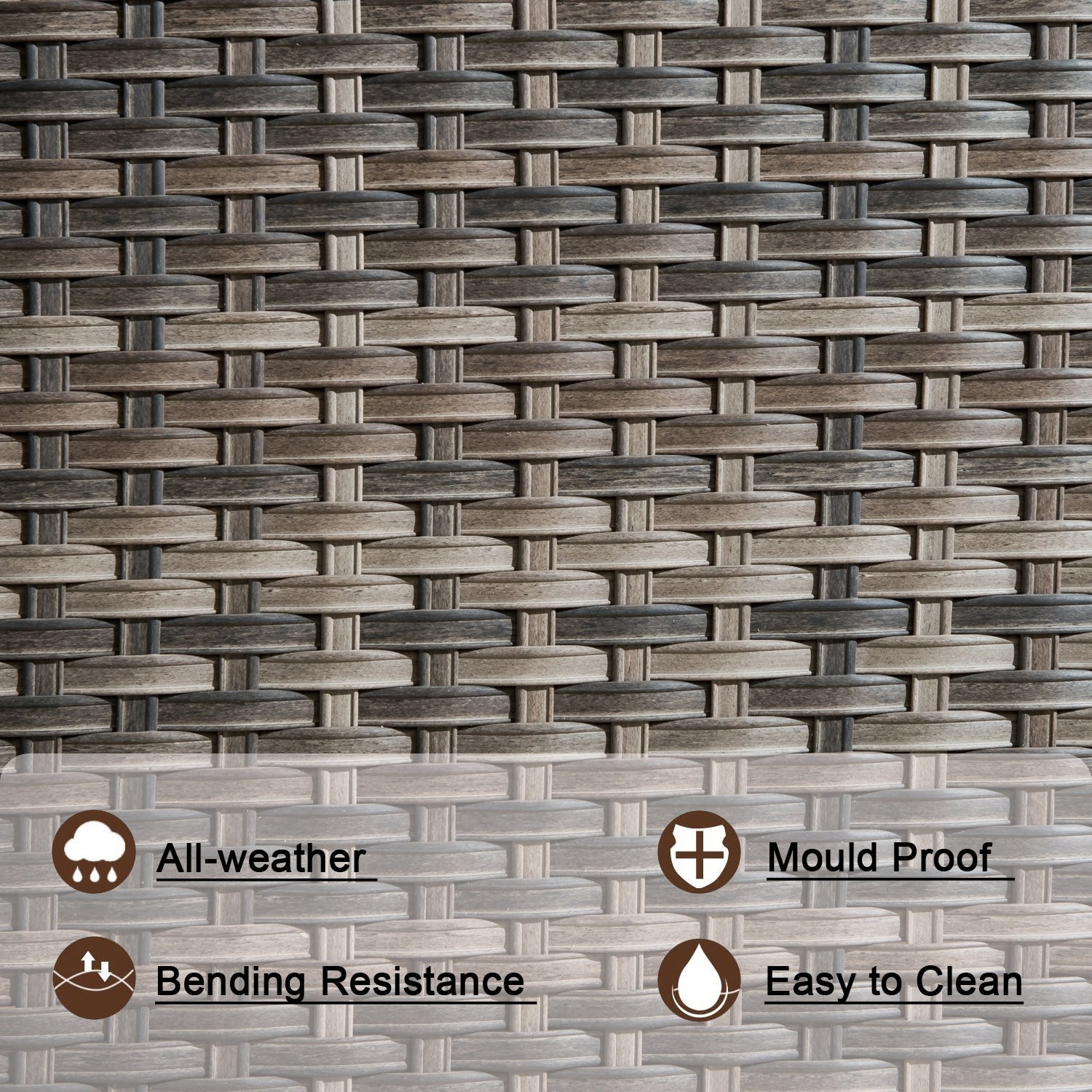 - Design en osier durable : La construction robuste en osier, résistante aux intempéries, assure une durabilité à long terme et résiste à la décoloration et aux dommages causés par les éléments. Cet ensemble est conçu pour résister aux conditions extérieures pendant des années.