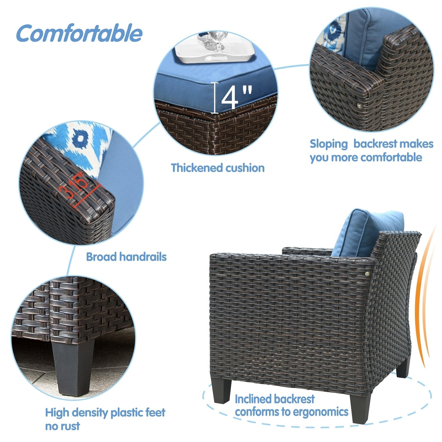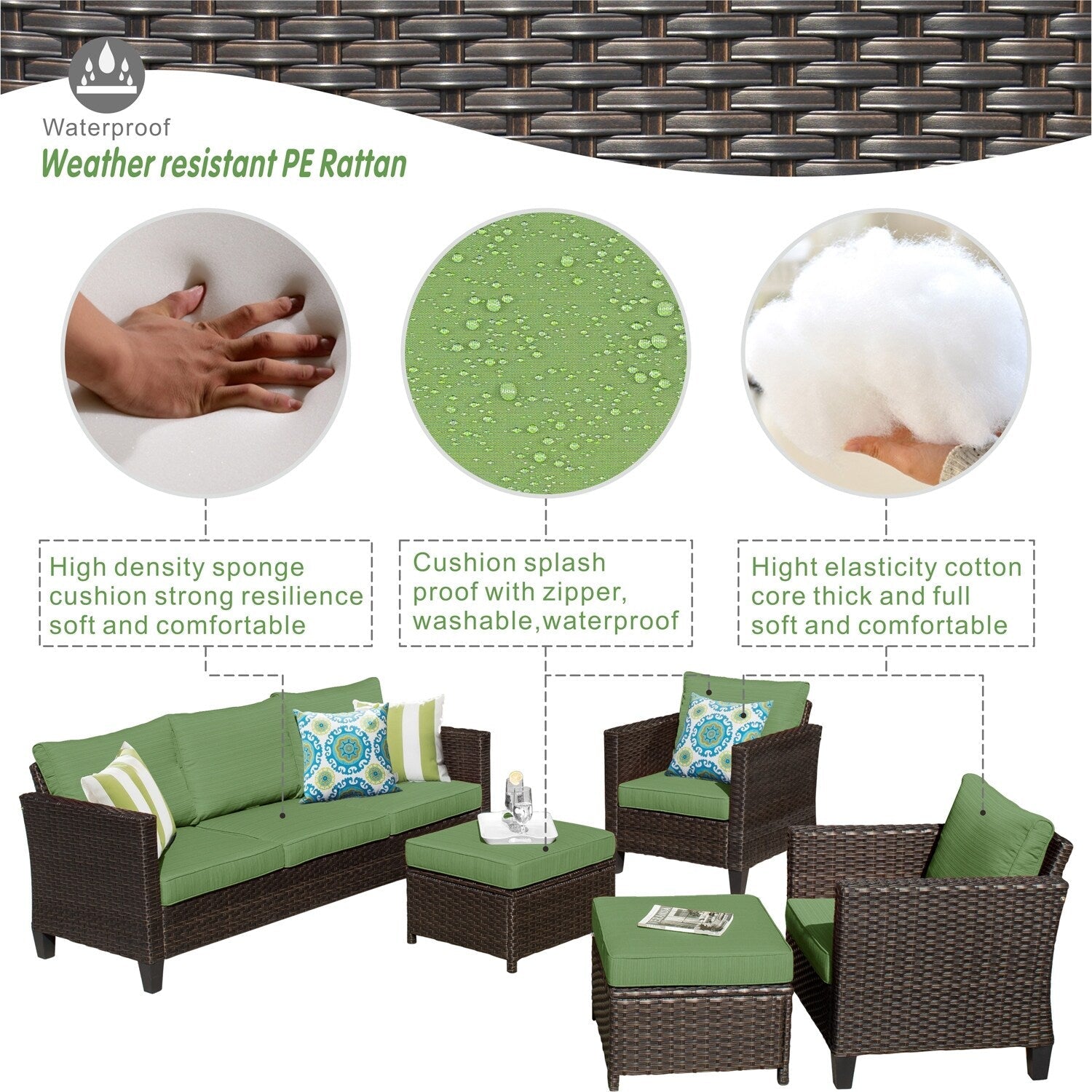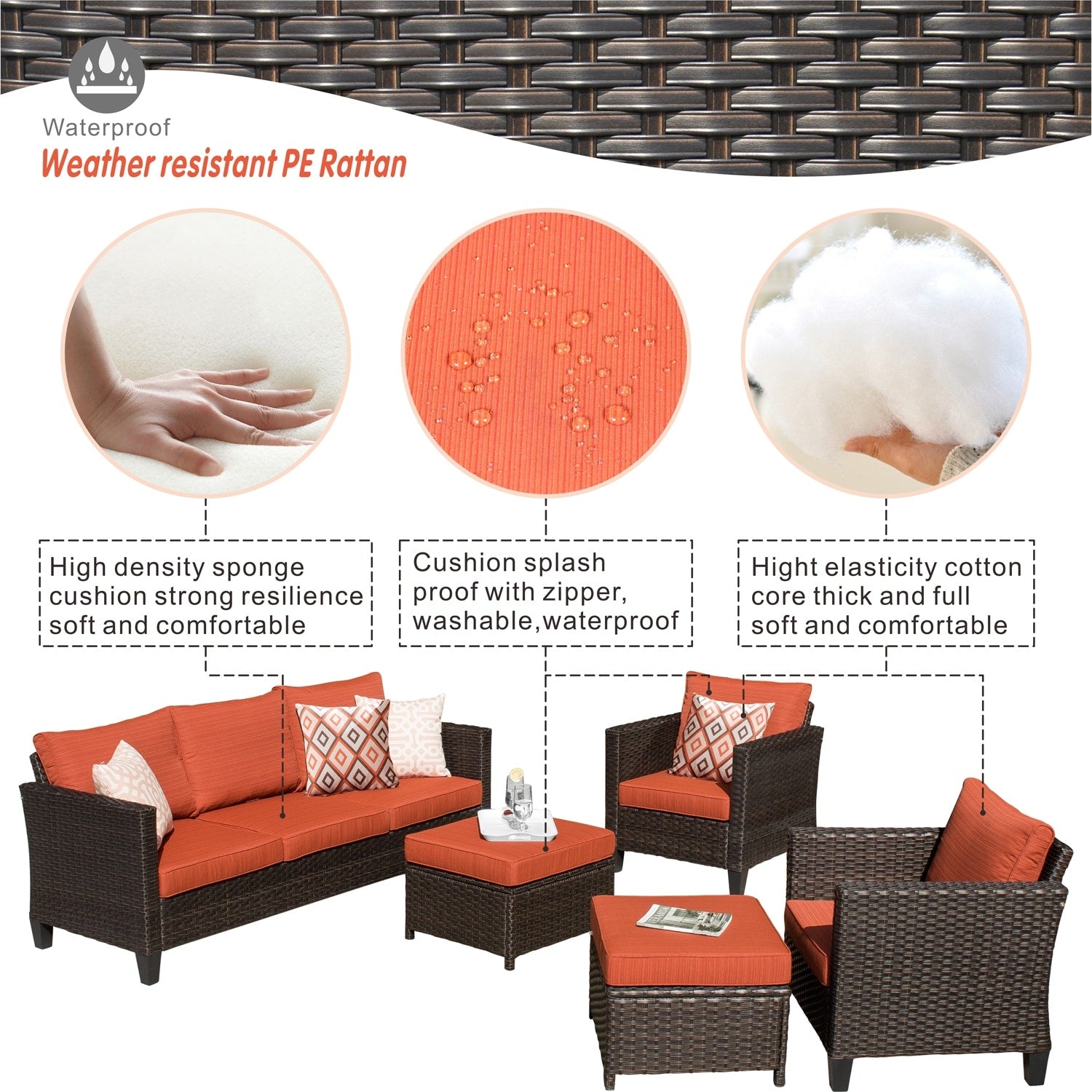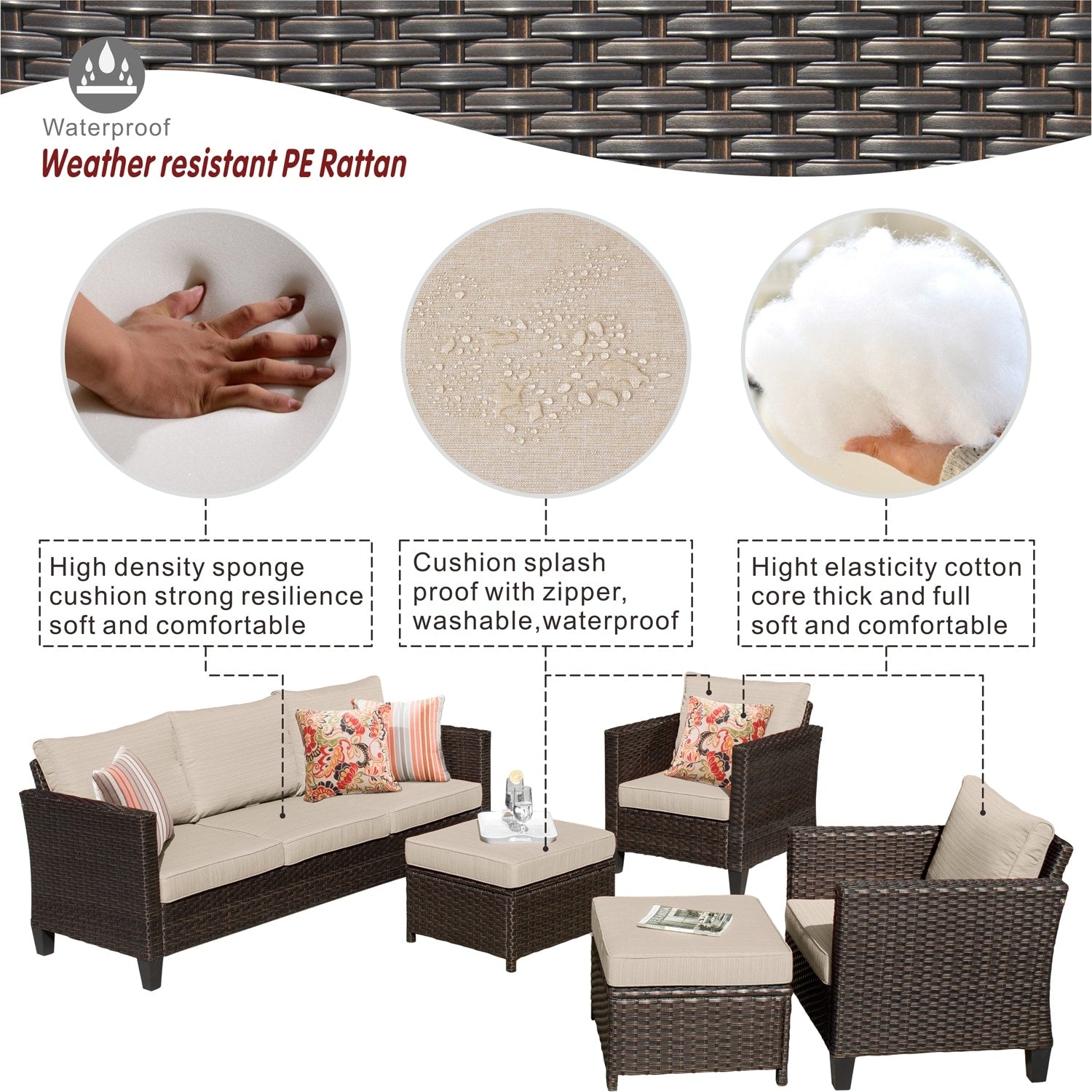 OVIOS Ensemble de meubles de jardin en rotin pour extérieur, 5 pièces, avec dossier haut.