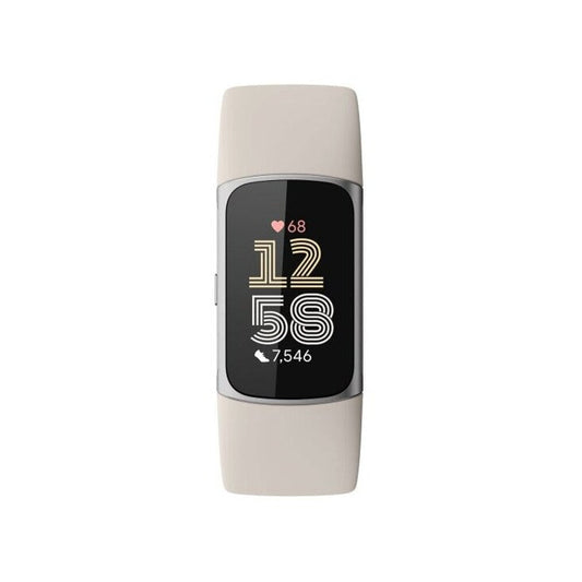 Fitbit Charge 6, tracker d'activité physique, finition en porcelaine et aluminium argenté.