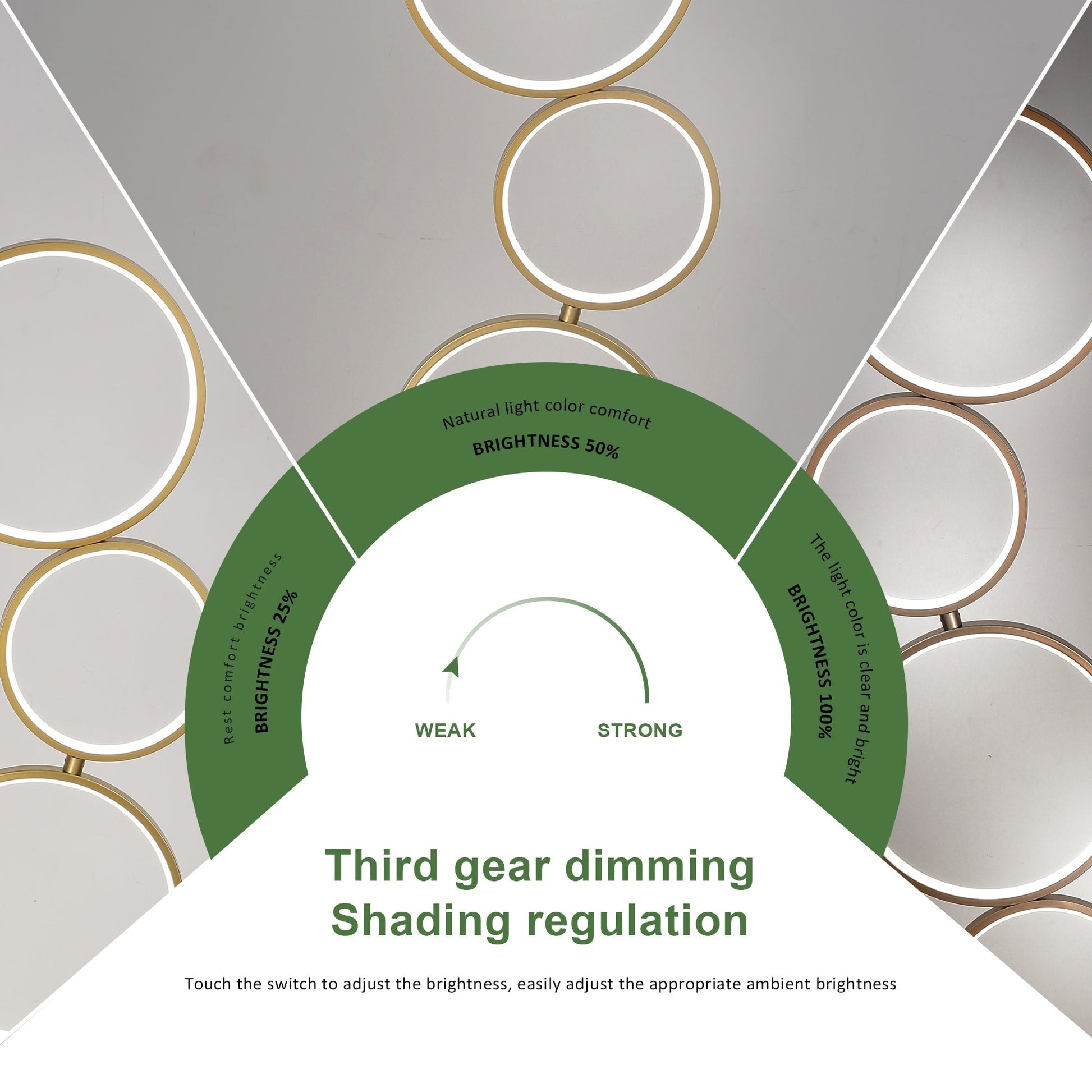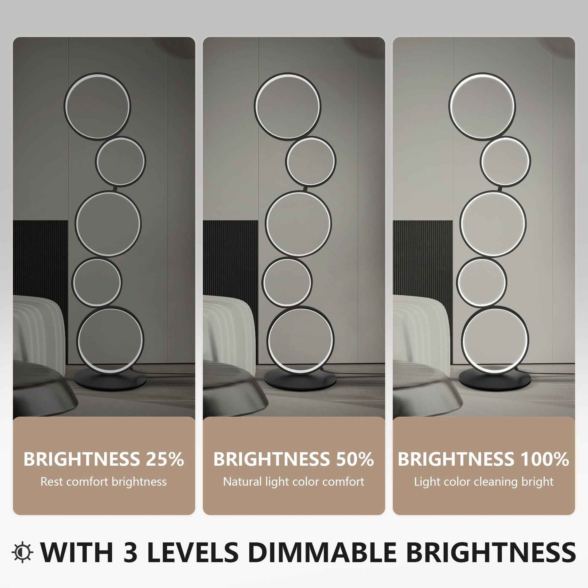 Le style unique et élégant de ce lampadaire moderne a laissé une profonde impression sur les invités. Le socle combiné de 5 anneaux mesure environ 117 cm de haut et convient au salon, à la chambre à coucher, au bureau, à la chambre d'enfant, etc. Il enrichit votre salon d'une ambiance chaleureuse et confortable.