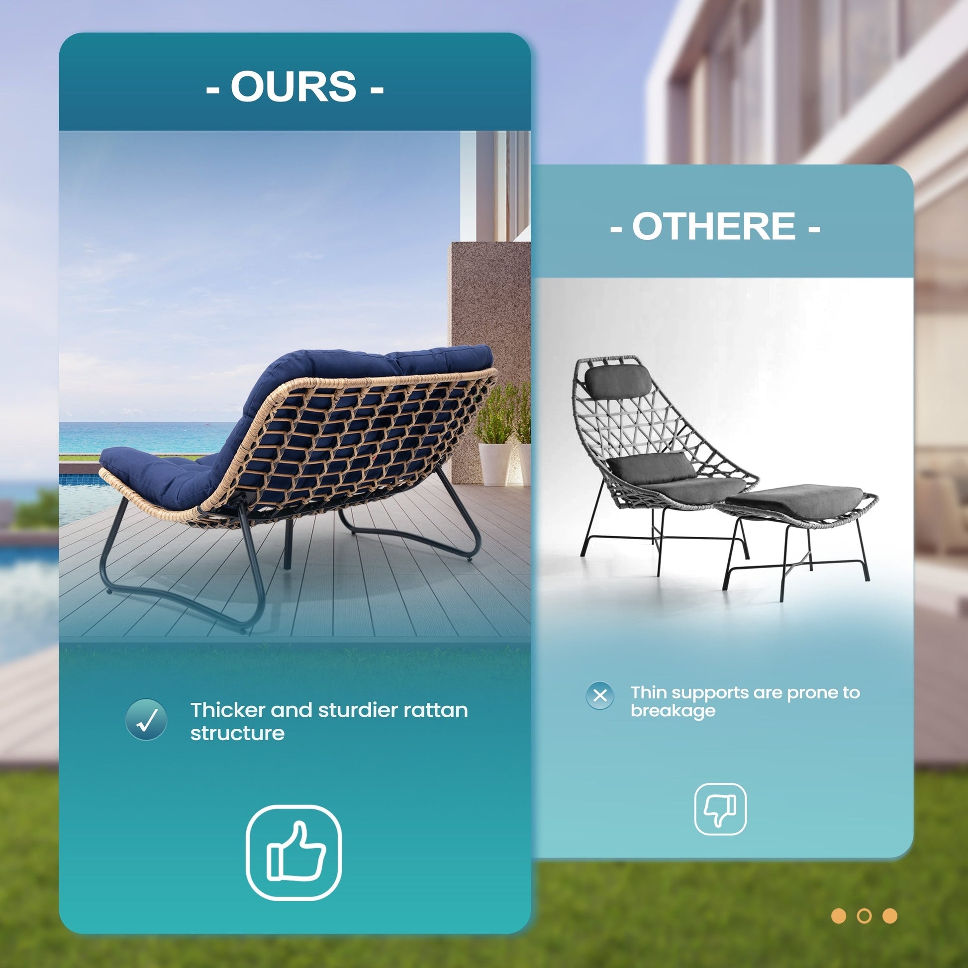 Fauteuil Papasan double avec coussin, en rotin PE...