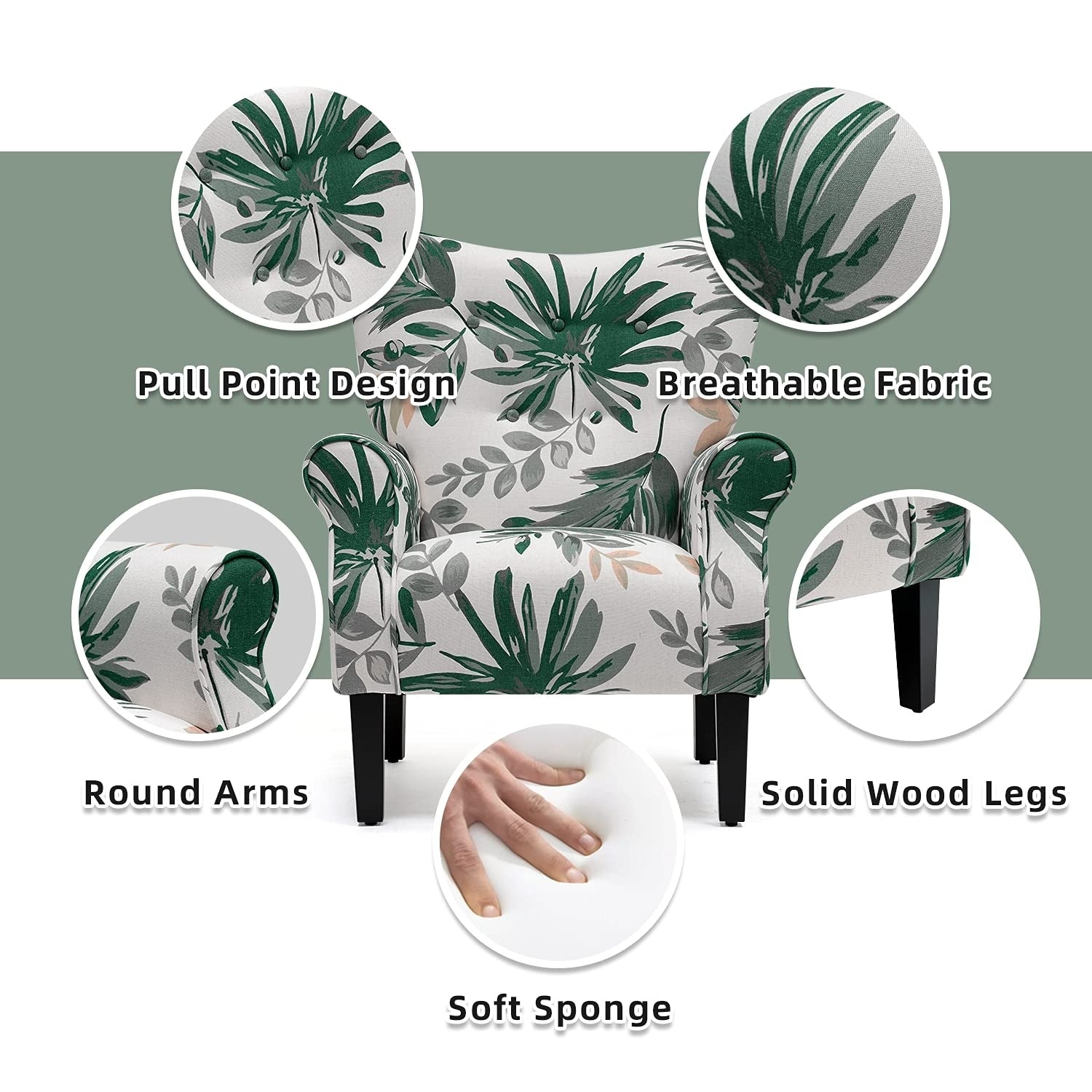 Erommy Fauteuil d'appoint moderne, fauteuil à dossier haut, canapé simple recouvert de tissu avec boutons et pieds en bois pour salon