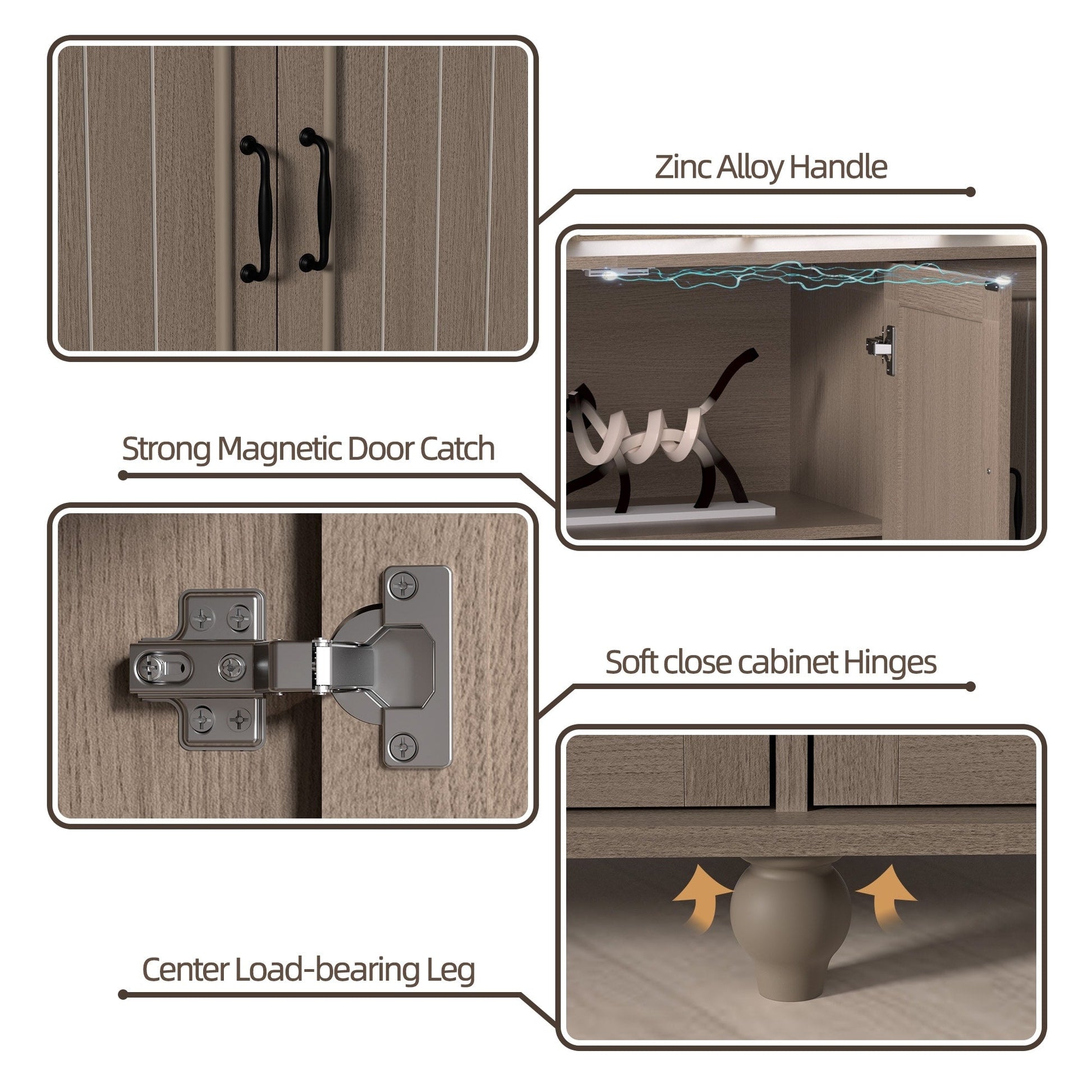 Ce buffet sera un excellent choix pour votre maison. Fabriqué en MDF avec des pieds en bois, il est durable et résistant à l'eau. Ce meuble comprend 4 portes pouvant accueillir votre vaisselle et autres bibelots. Vous pouvez également retirer l'étagère pour ranger des objets encombrants. Organiser son espace n'a jamais été aussi facile.