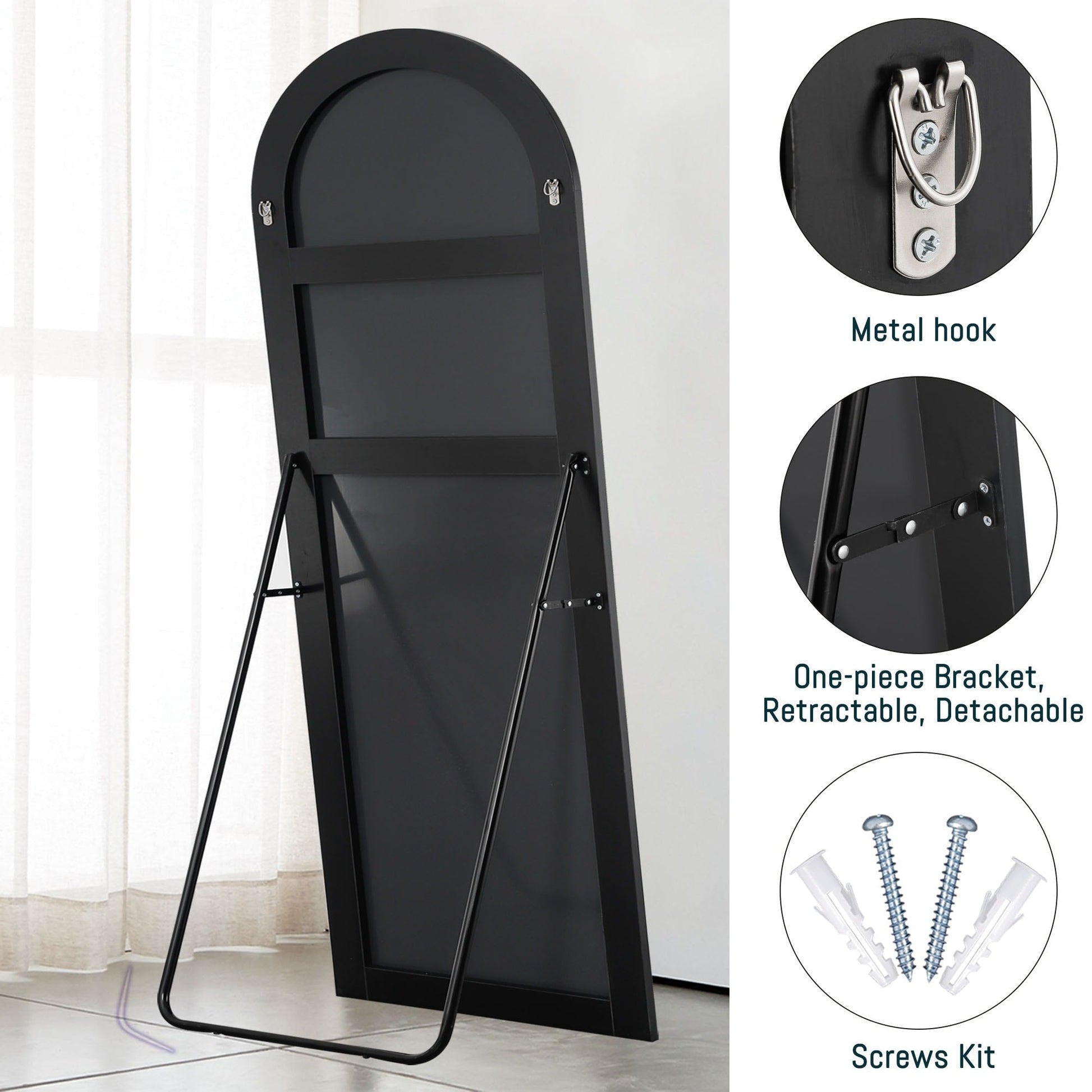 Sublimez votre intérieur avec le style moderne et la sophistication du miroir pleine longueur à arche. Ce miroir élégant s'intègre parfaitement à n'importe quelle pièce et style de décoration, offrant une excellente réflexion et une grande clarté. Le cadre en alliage d'aluminium massif et le verre incassable garantissent une haute qualité et une sécurité optimale.