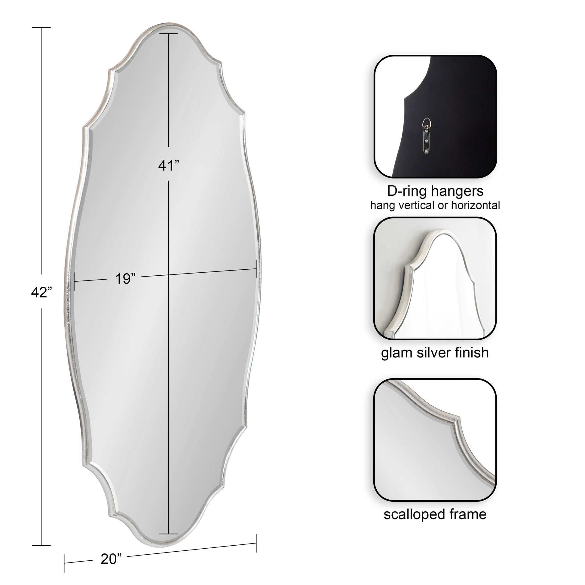 Kate and Laurel Leanna Miroir mural ovale à bords festonnés