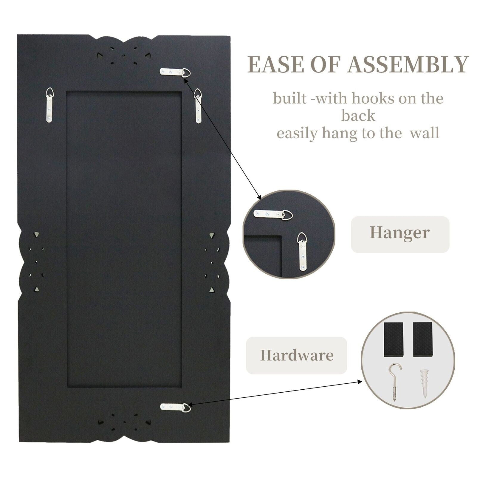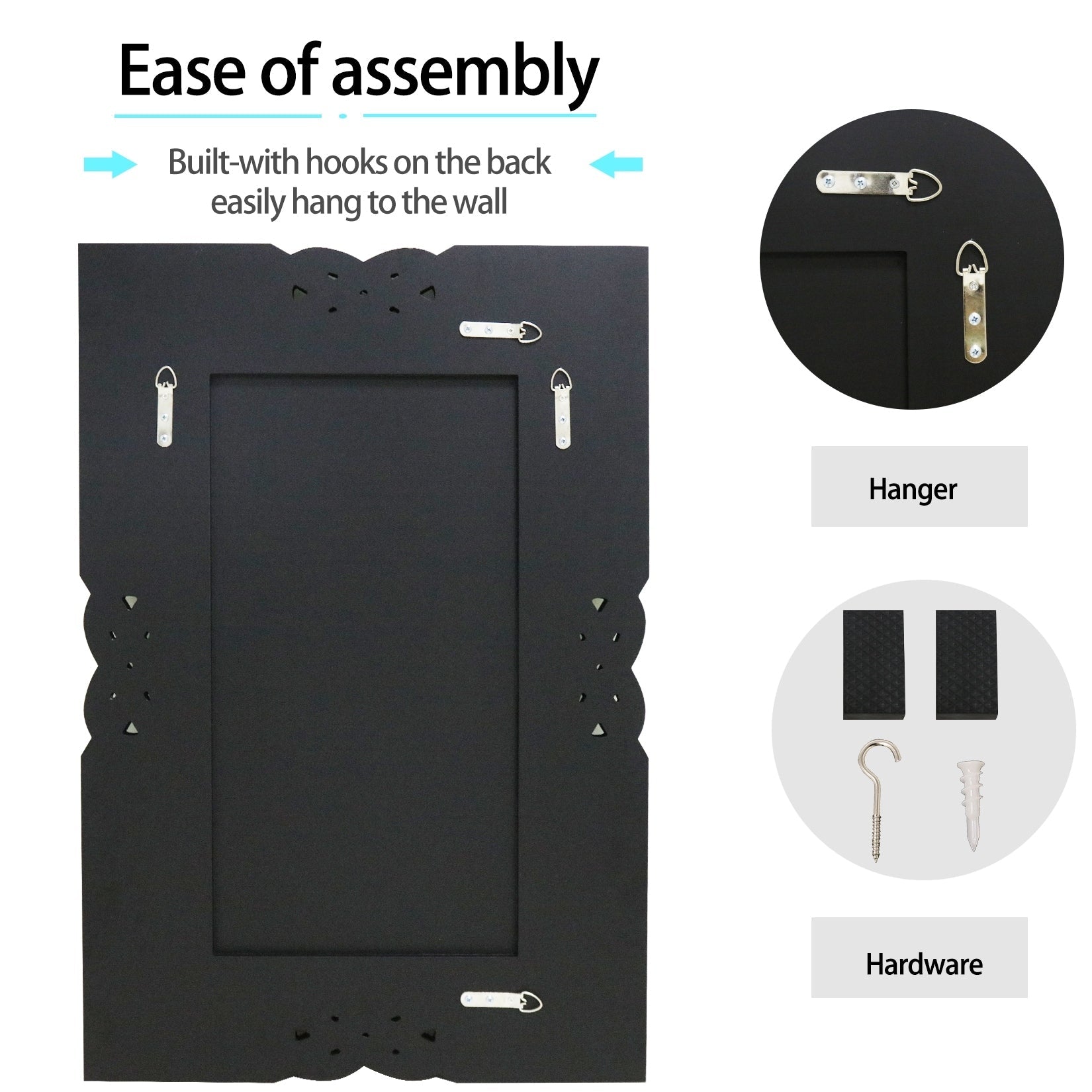J'ai accroché le miroir avec quatre crochets en forme de D à l'arrière, ce qui permet de le suspendre à la fois verticalement et horizontalement.