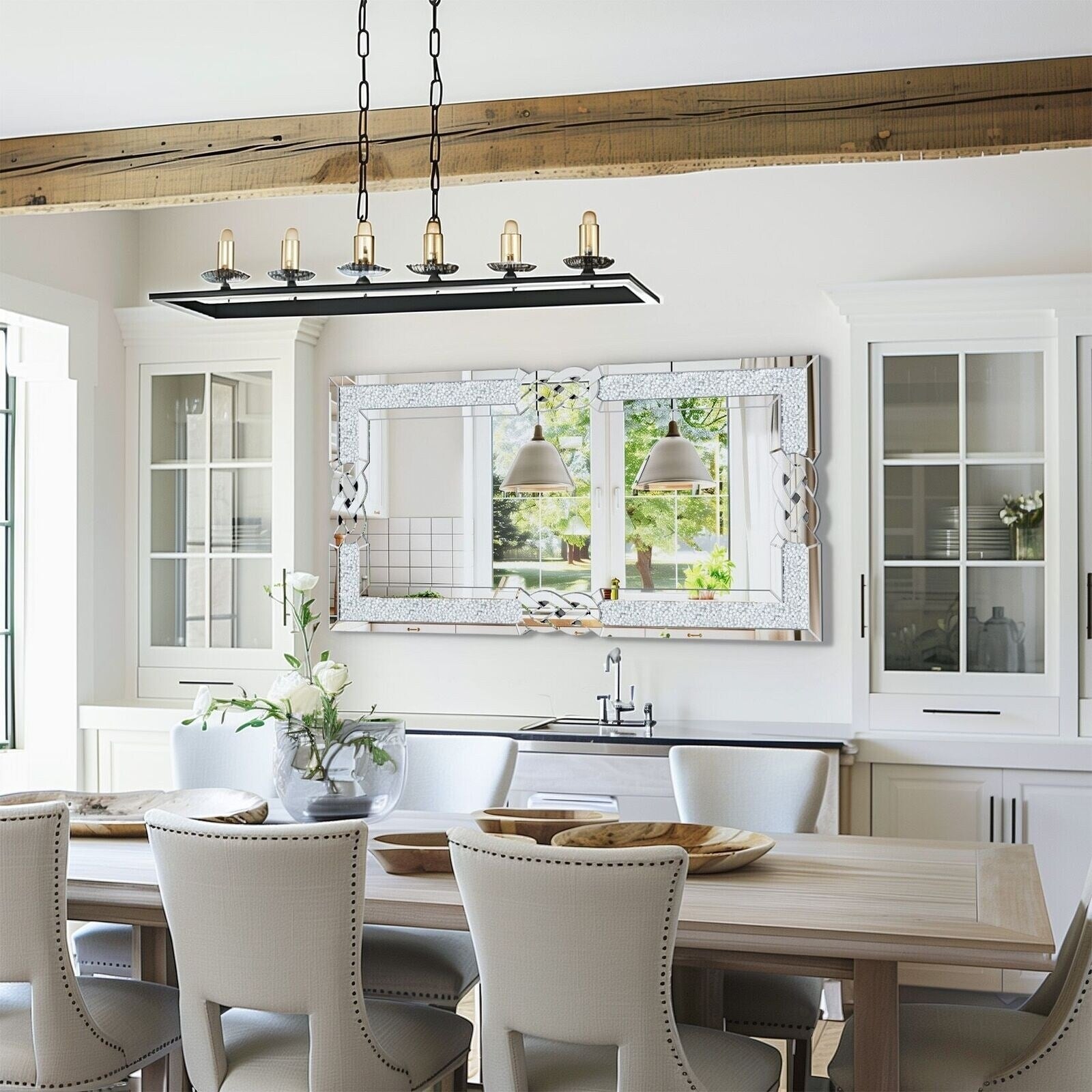 Grand miroir mural rectangulaire à facettes avec perles de cristal, à assembler.