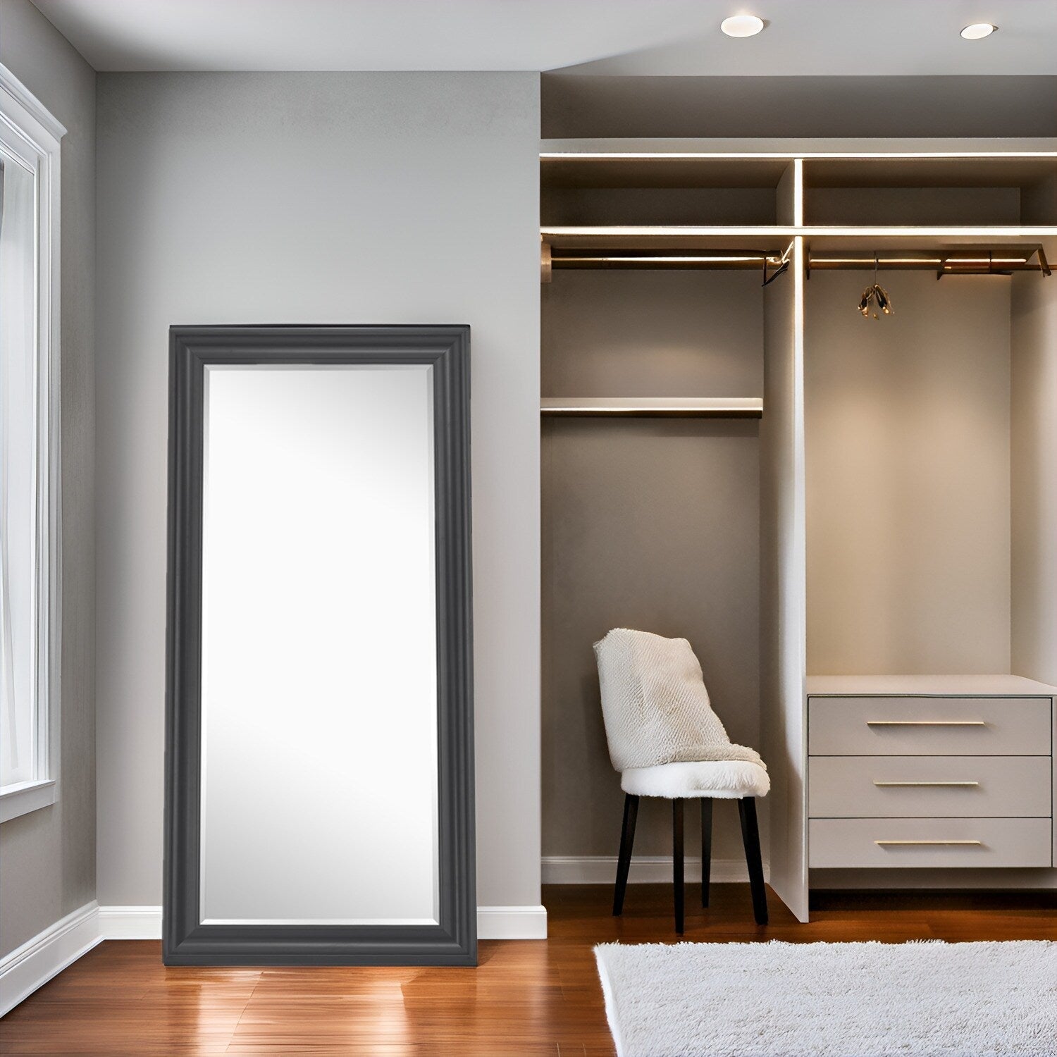 CONSTRUCTION MODERNE ET MINIMALISTE : Notre miroir pleine longueur, miroir au sol surdimensionné, est assez long et grand pour vous permettre de voir votre silhouette entière de la tête aux pieds pendant que vous vous préparez. Il ajoute une touche plus fonctionnelle et décorative à la pièce, et convient au salon, à la chambre à coucher, aux placards, à l'entrée, au couloir, au dressing, etc. Ce miroir pleine longueur encadré a un design classique et moderne avec un cadre qui crée une illusion d'espace plus vaste.