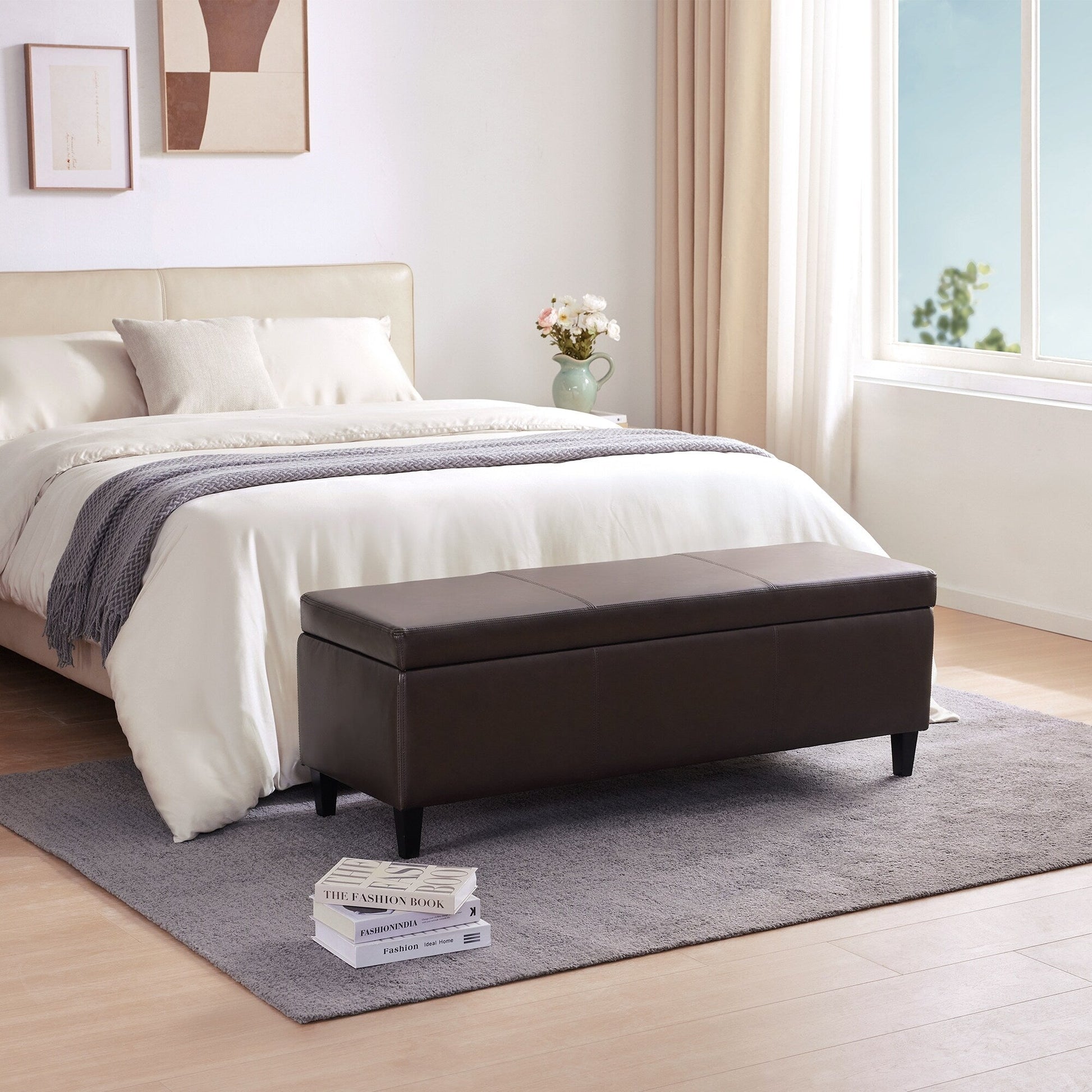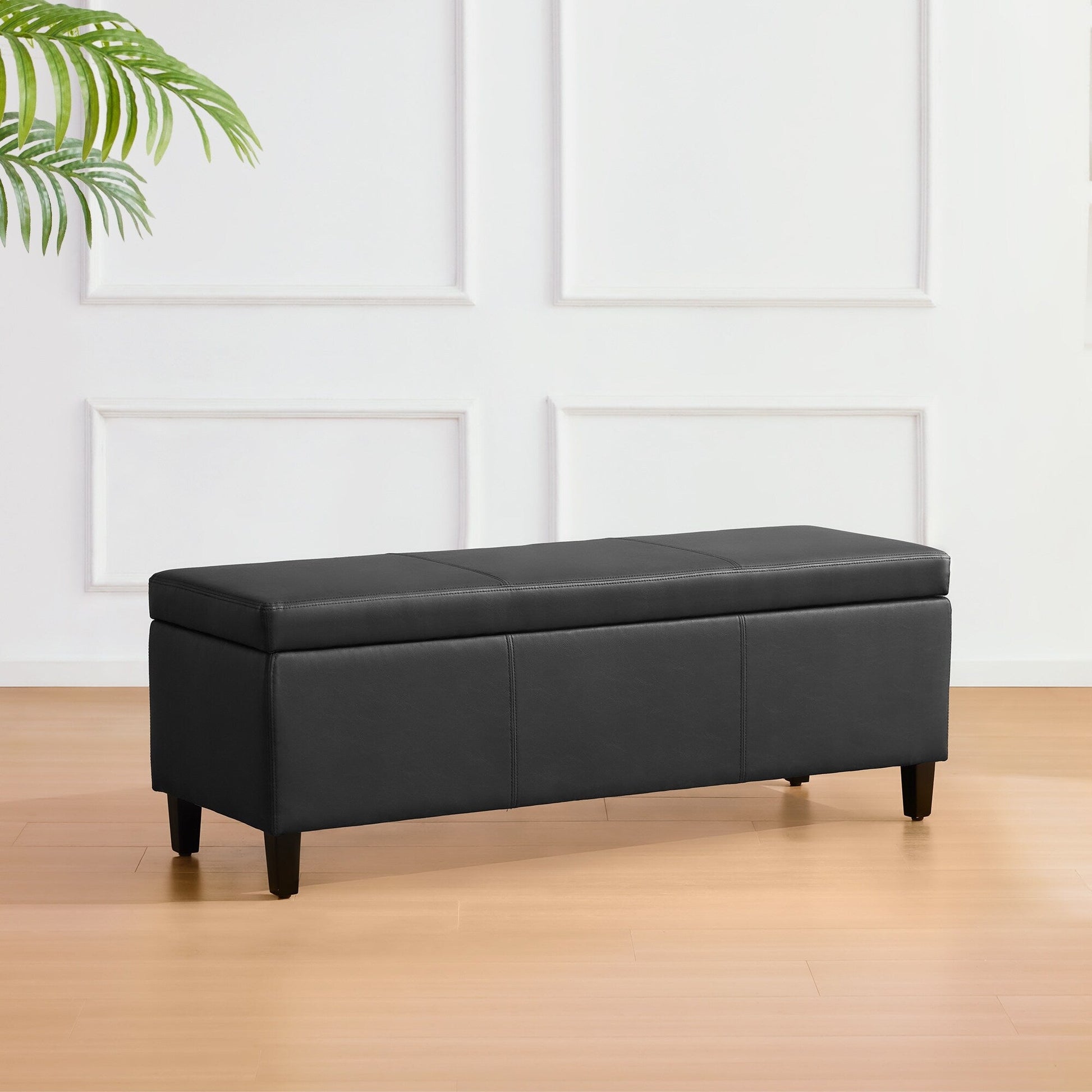 Ottoman rectangulaire de rangement recouvert de simili cuir - 50,3 x 17,50 x 18 pouces