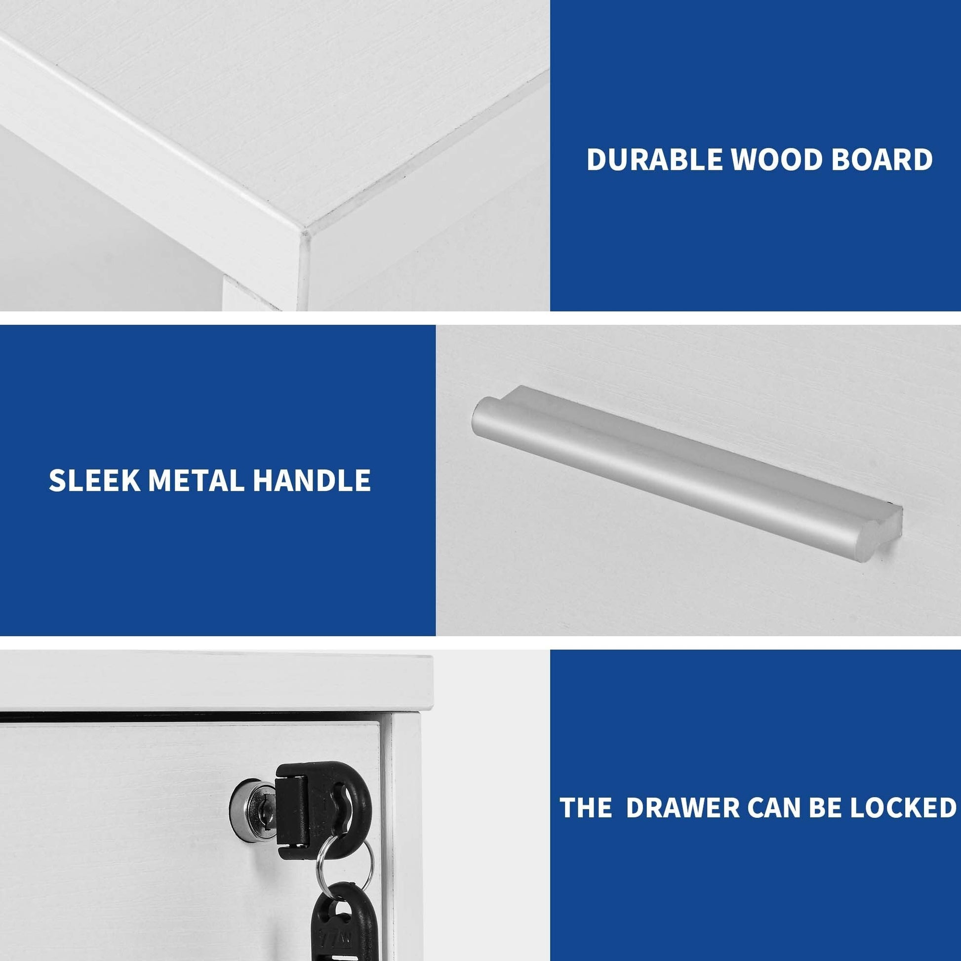 3. Gardez vos dossiers et vos objets de valeur en sécurité : Le tiroir inférieur à dossiers est équipé de barres de suspension pouvant contenir des dossiers de format A4, lettre et légal de manière organisée. Le tiroir supérieur est doté d'une serrure qui protège vos effets personnels contre tout accès non autorisé.