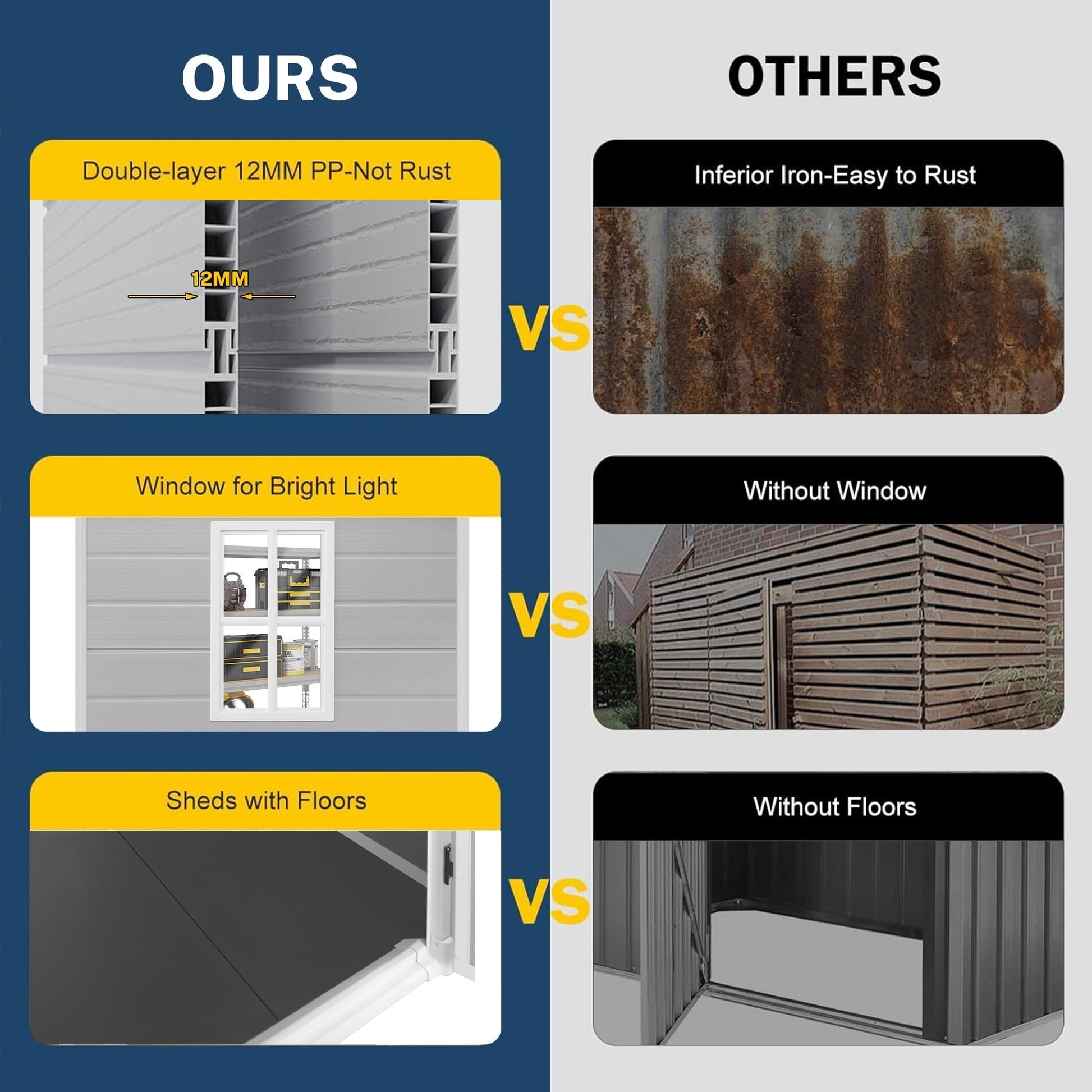 - Une impressionnante capacité de stockage pour répondre à divers besoins de rangement en extérieur.