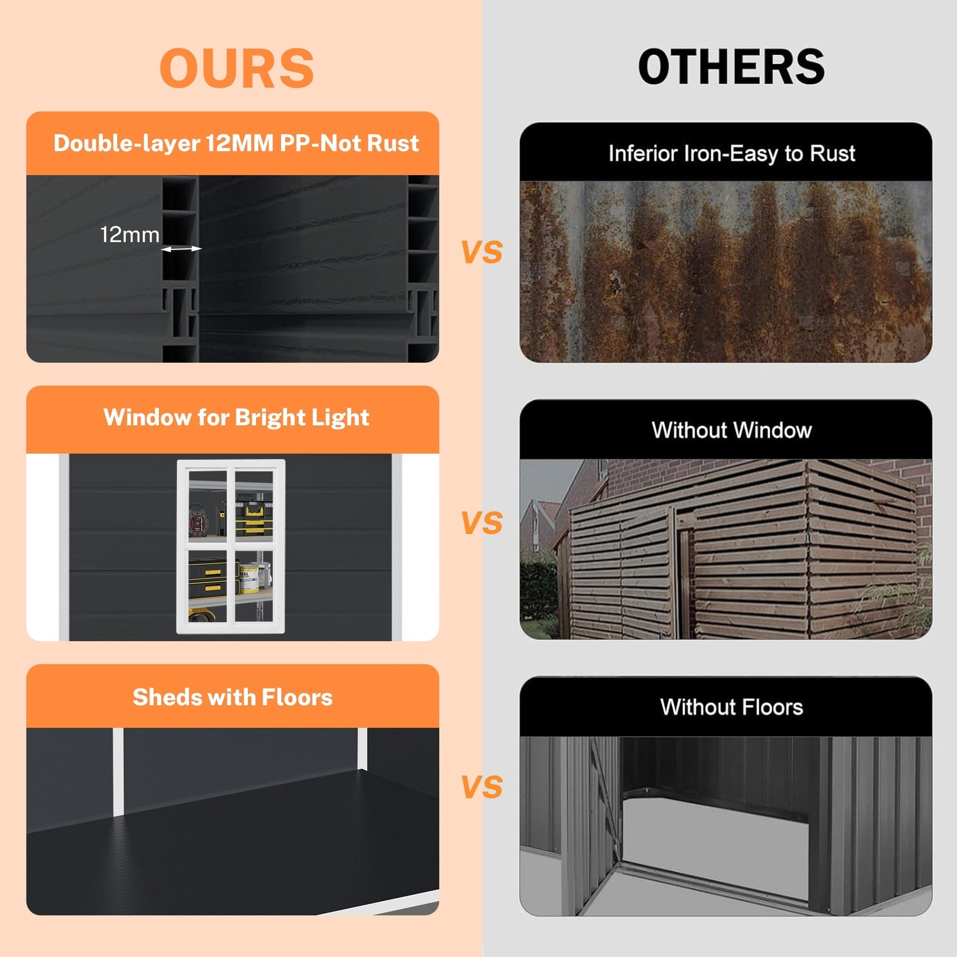 - Ce cabanon est livré en DEUX colis (Gris/Gris foncé-6 x 4, Gris foncé-6 x 8) / TROIS colis (Gris-8 x 6, Gris foncé-8 x 10) / QUATRE colis (Gris-8 x 10) qui peuvent arriver à des moments différents. Si vous ne recevez qu'un seul colis, veuillez patienter quelques jours.