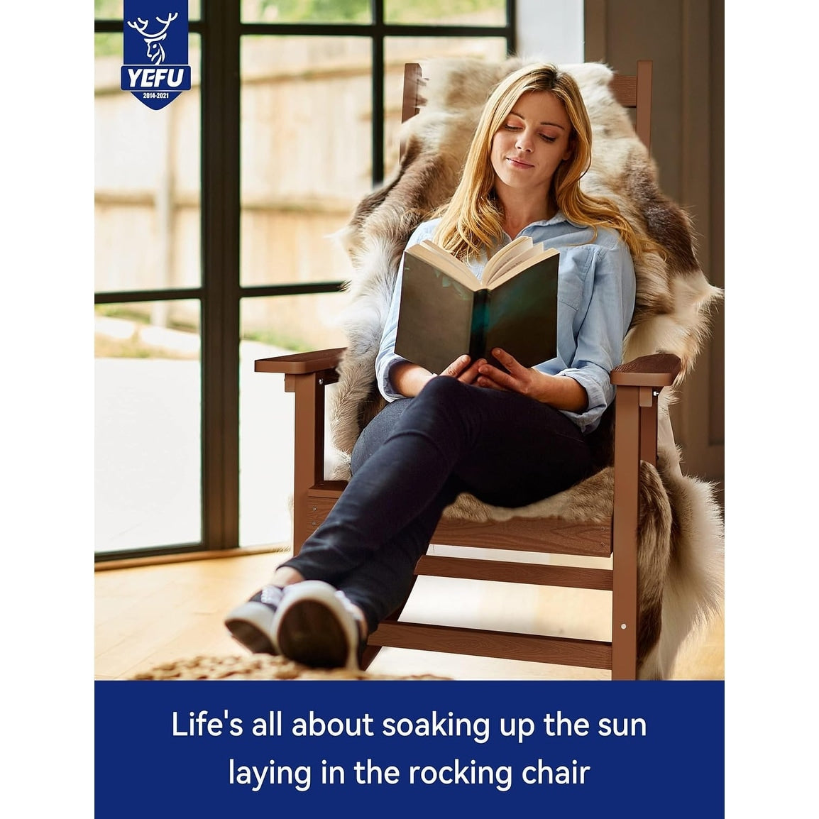 Apportez style et durabilité à votre espace intérieur/extérieur avec le fauteuil basculant d'extérieur WINSOON All Weather HIPS. Ce fauteuil est fabriqué en HIPS, un matériau robuste et résistant à l'eau, aux UV et aux intempéries qui ne se décolore pas, ne se fissure pas, ne se déforme pas, ne se peluche pas et ne pourrit pas. L'aspect imitation bois ajoute une touche classique sans l'entretien nécessaire pour le bois véritable. Ce fauteuil est équipé d'un dossier haut et d'accoudoirs larges, offrant un confort et une stabilité maximums. Il a subi 120 000 tests et convient à une utilisation toute l'année. Le montage du fauteuil est facile et tous les outils en acier inoxydable sont inclus. Il est également livré avec une garantie de 3 ans.