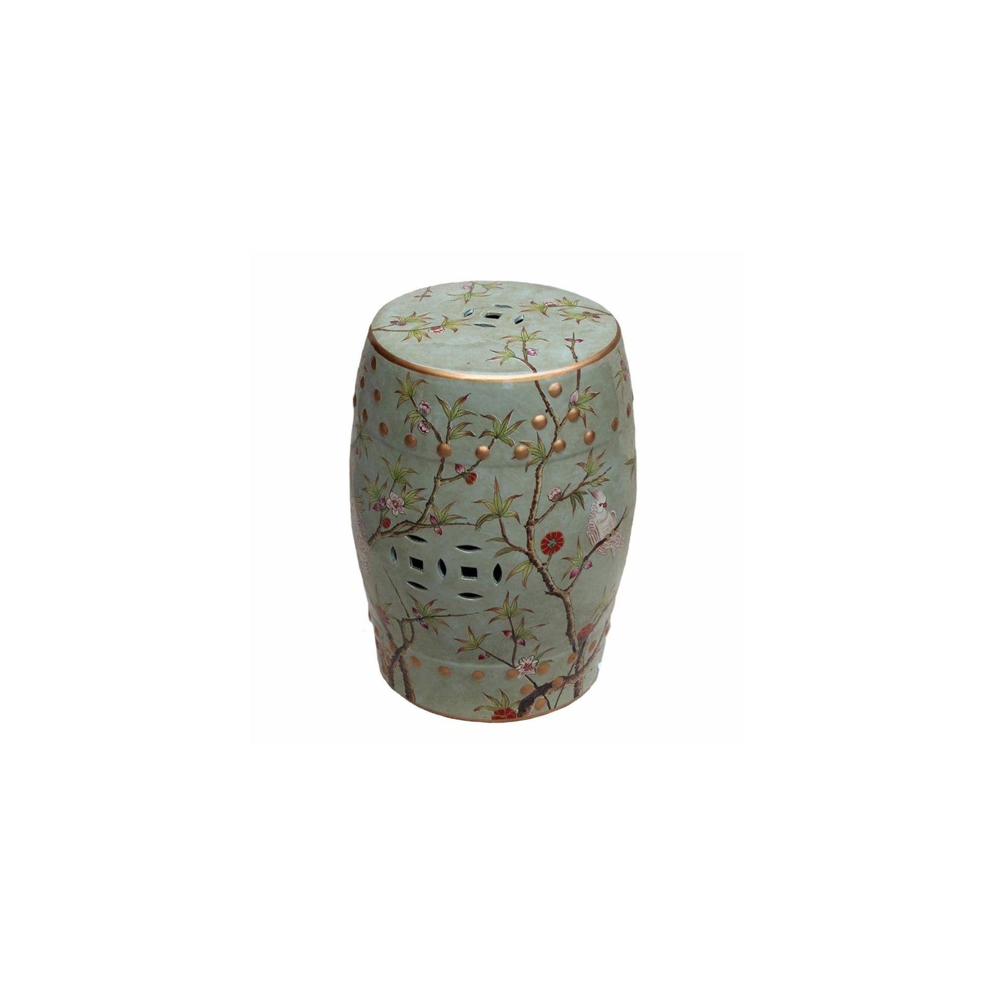 Ajoutez une touche d'élégance et de fonctionnalité à votre espace extérieur avec ce tabouret en porcelaine Famille, fabriqué à la main. Fabriqué en porcelaine lisse, ce tabouret décoratif présente un motif botanique complexe aux tons dorés, verts et rouges qui lui confèrent un aspect magnifique. Parfait pour votre patio ou votre balcon, ce tabouret peint à la main est une solution d'assise polyvalente qui rehaussera l'aspect de votre espace.