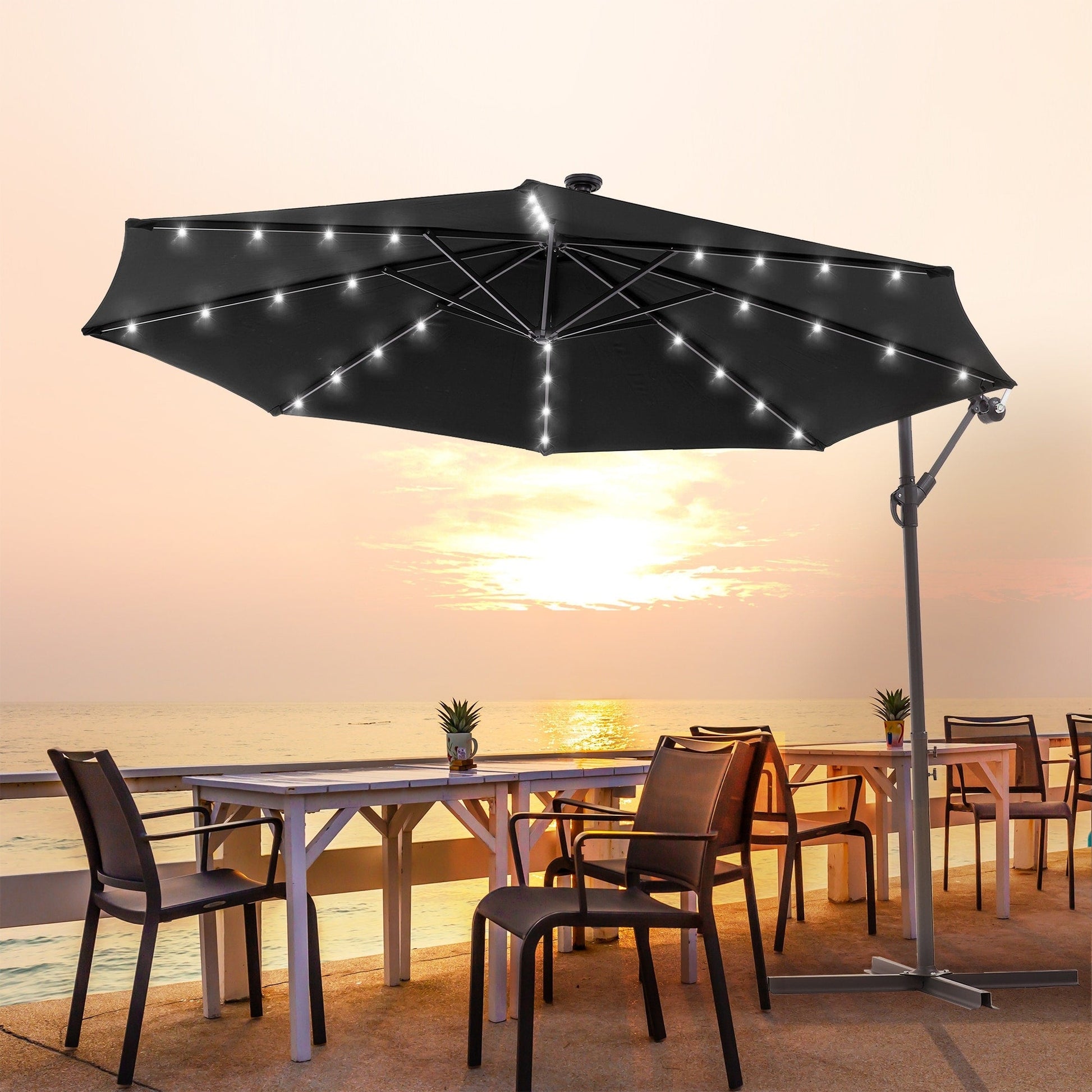 Parasol de terrasse déporté LED LIVOOSUN 10 pieds avec pied en croix