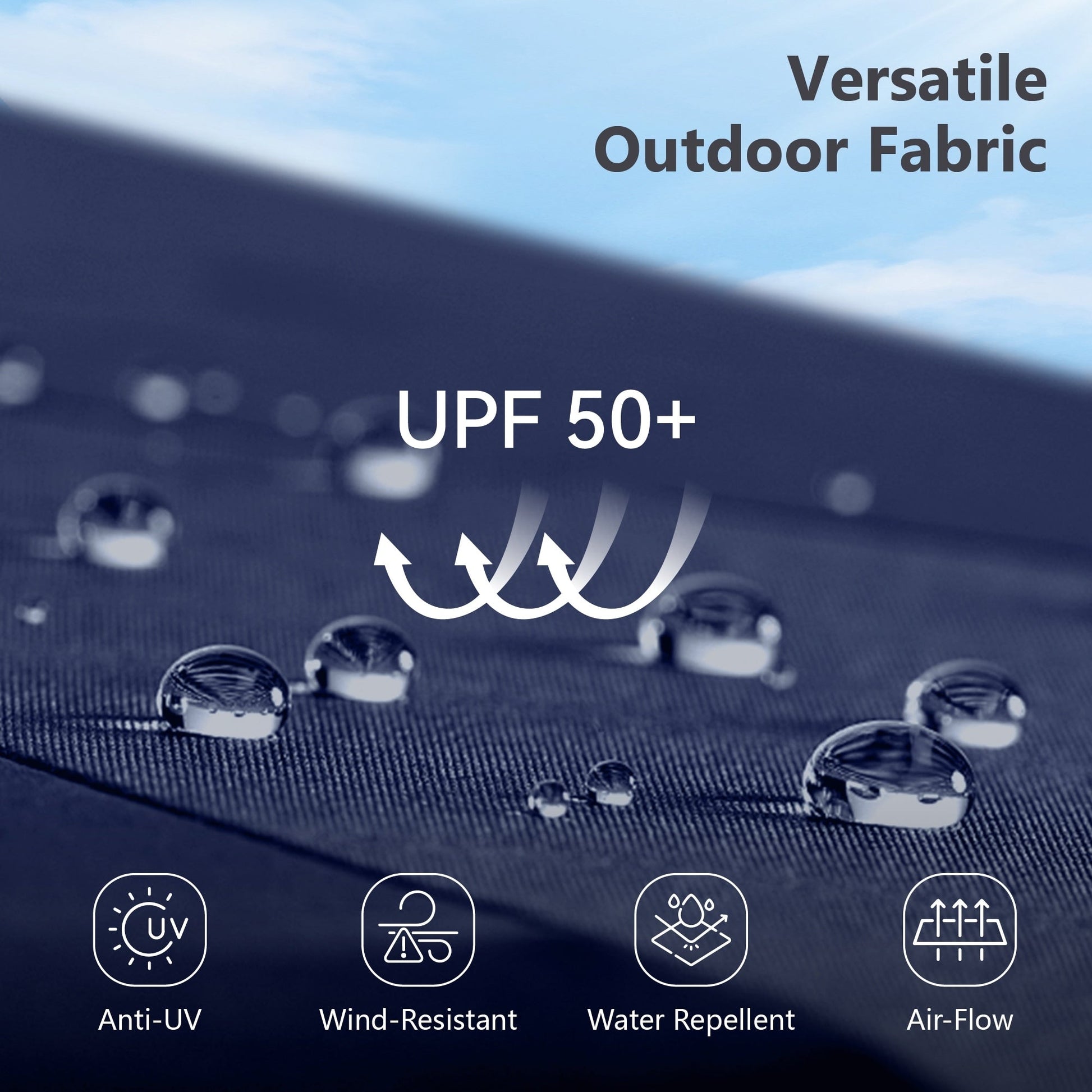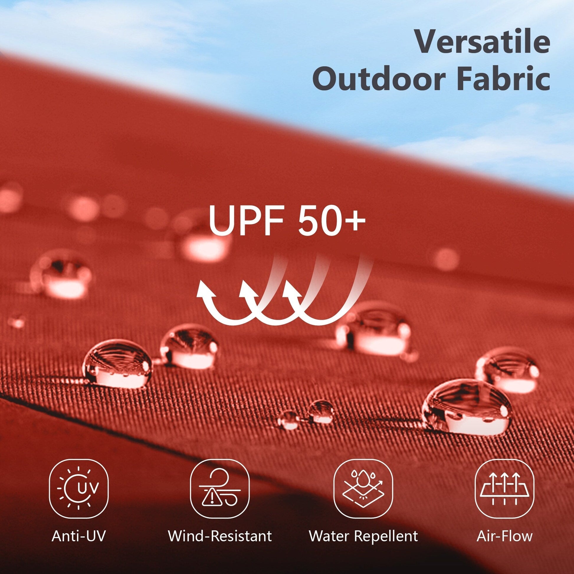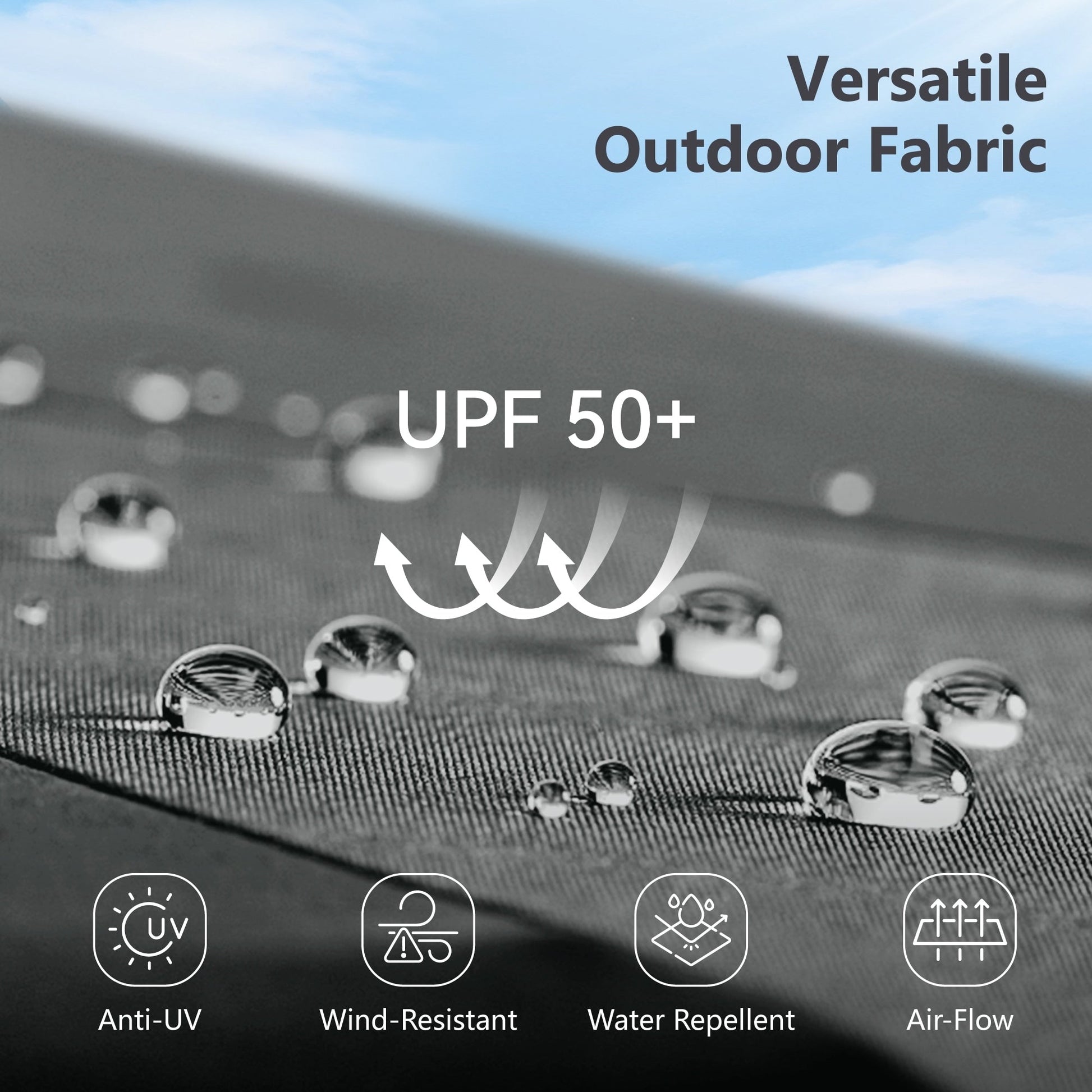 2. Fabriqué en tissu teinté en solution de 250 g avec un revêtement PA pour une durabilité accrue, une imperméabilité, une protection solaire et une résistance à la décoloration. Le tissu teinté en solution garantit la stabilité des couleurs jusqu'à 3 ans.