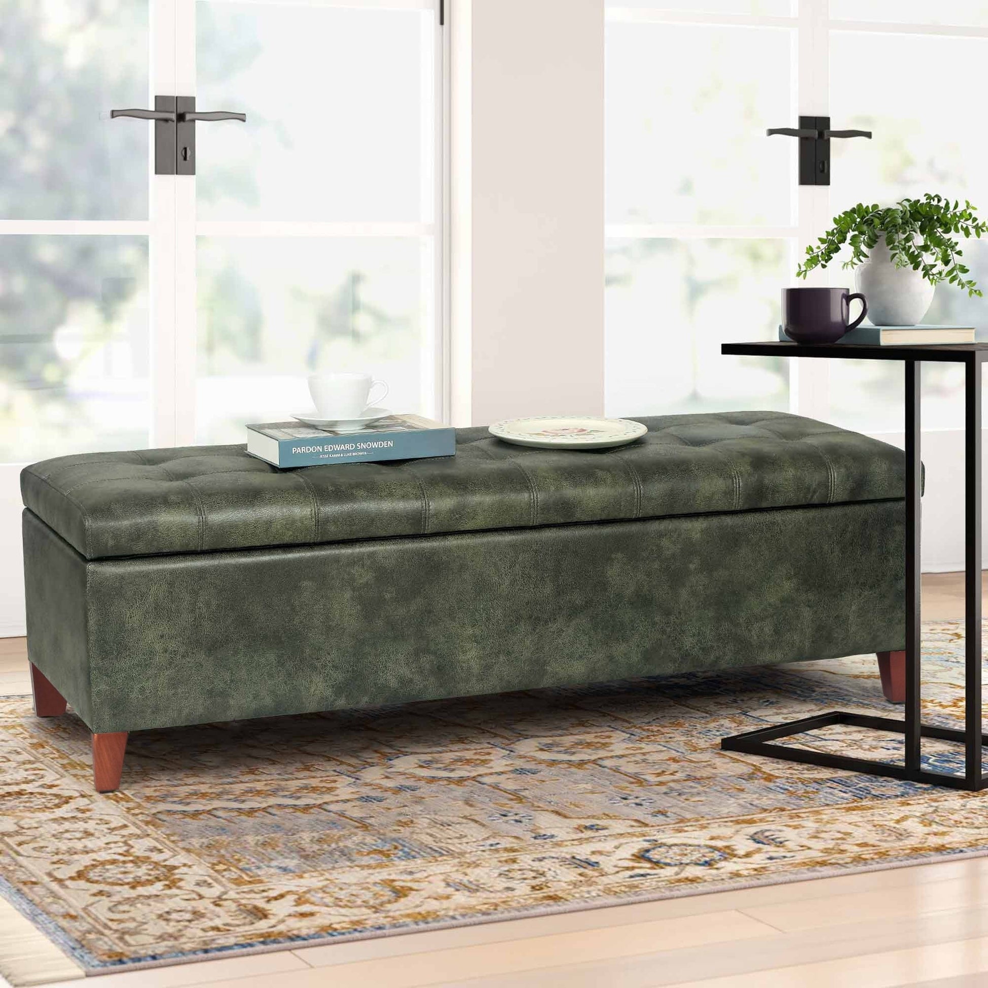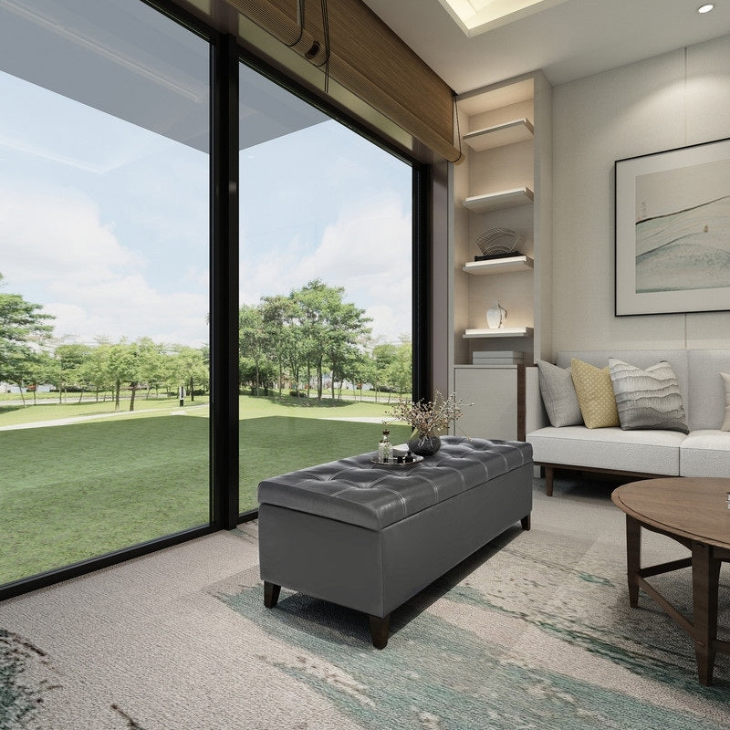 Ajoutez sophistication et rangement à votre espace avec ce banc coffre à rangement. Ce meuble élégant, disponible en plusieurs couleurs, est doté d'un rembourrage capitonné pour un assise confortable et d'un grand espace de rangement intérieur idéal pour les couvertures, les livres ou autres objets ménagers. Le design surélevé ajoute du caractère à votre chambre à coucher ou à votre entrée, tandis que le cuir synthétique durable garantit une qualité durable.