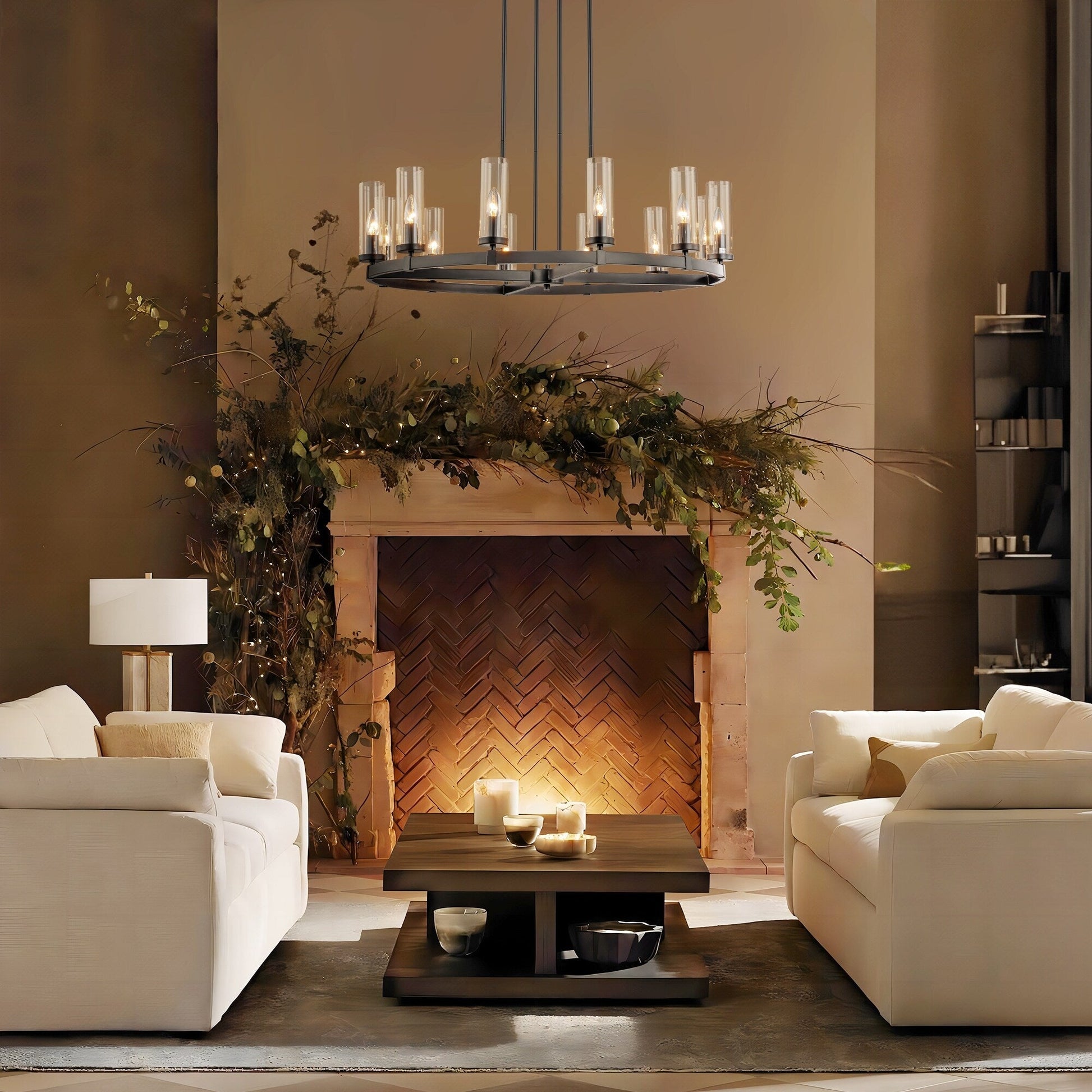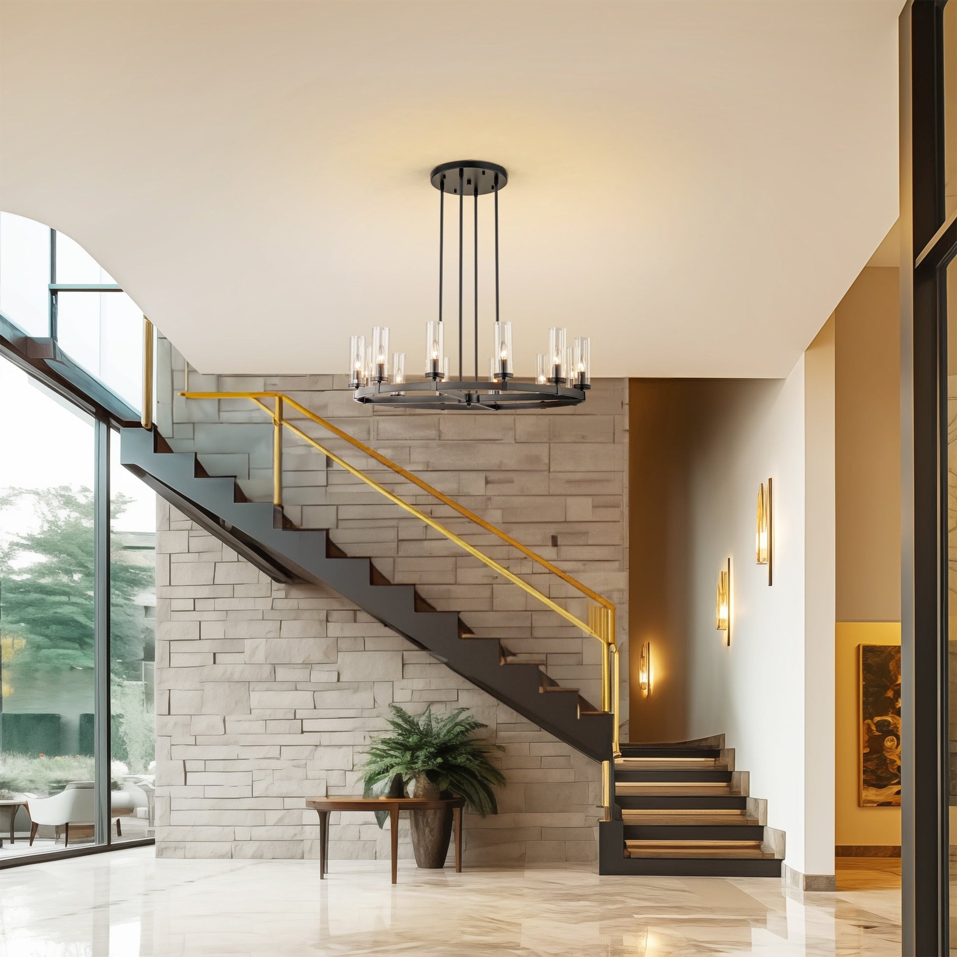 Grand lustre à 12 lumières, style cylindrique moderne...