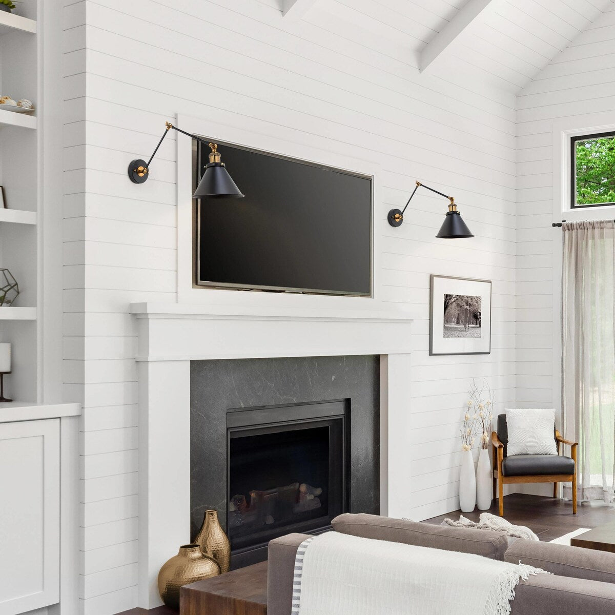Ajoutez une touche d'élégance et de fonctionnalité à votre décoration avec le lot de 2 appliques murales pivotantes réglables Malryn, modernes, noires et dorées. Ces appliques discrètes sont fabriquées en fer et présentent une finition métallique bicolore qui crée une atmosphère luxueuse et sobre. Le bras réglable vous permet de diriger la lumière exactement là où vous en avez besoin, ce qui est parfait pour lire au lit ou créer une ambiance chaleureuse dans votre salon. Avec deux modes d'installation, du câblage direct à la prise, ces appliques sont polyvalentes et faciles à utiliser.