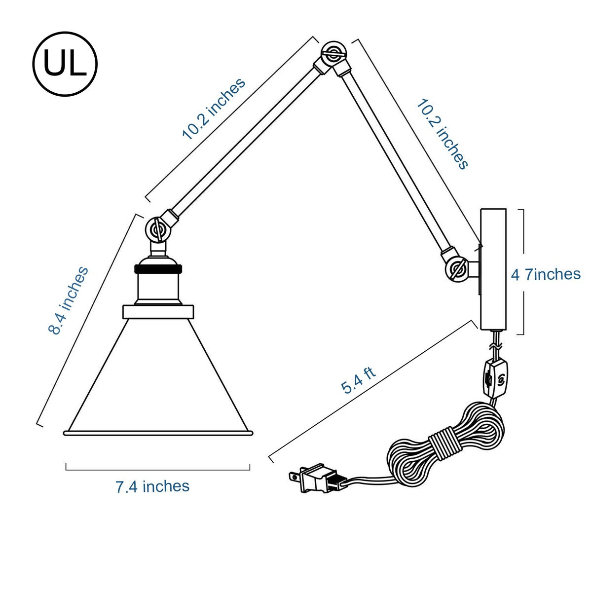 Malryn Lot de 2 appliques murales modernes à bras oscillant réglable, à brancher ou à câbler directement