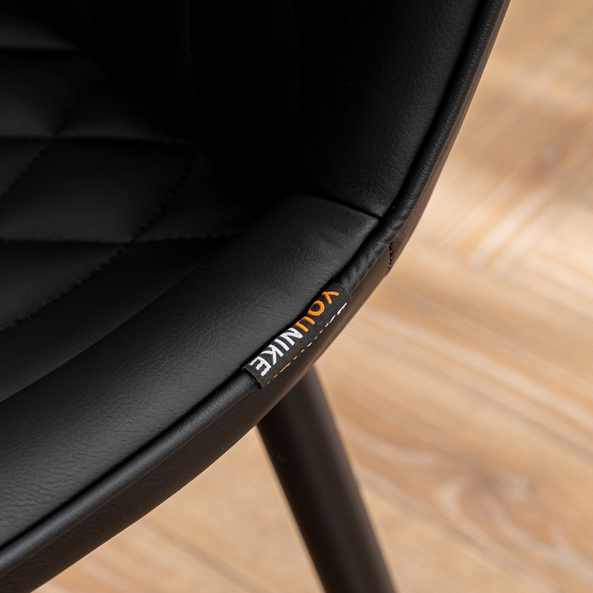 Fonction : dossier ; motif queue de poisson ; résistant aux rayures ; peinture 3 couches ; sans accoudoirs ; assise rembourrée et tapissée ; quatre pieds en métal ; cuir ; imperméable ; installation facile