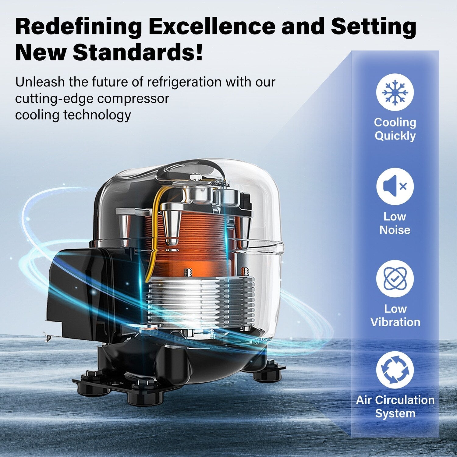 Refroidissement rapide et écologique : Doté du réfrigérant avancé R600a, ce réfrigérateur à boissons refroidit rapidement et uniformément en seulement 40 minutes. Le système de refroidissement écologique est certifié DOE pour son efficacité énergétique, réduisant ainsi votre consommation d'énergie et votre impact environnemental tout en offrant des performances de refroidissement puissantes.